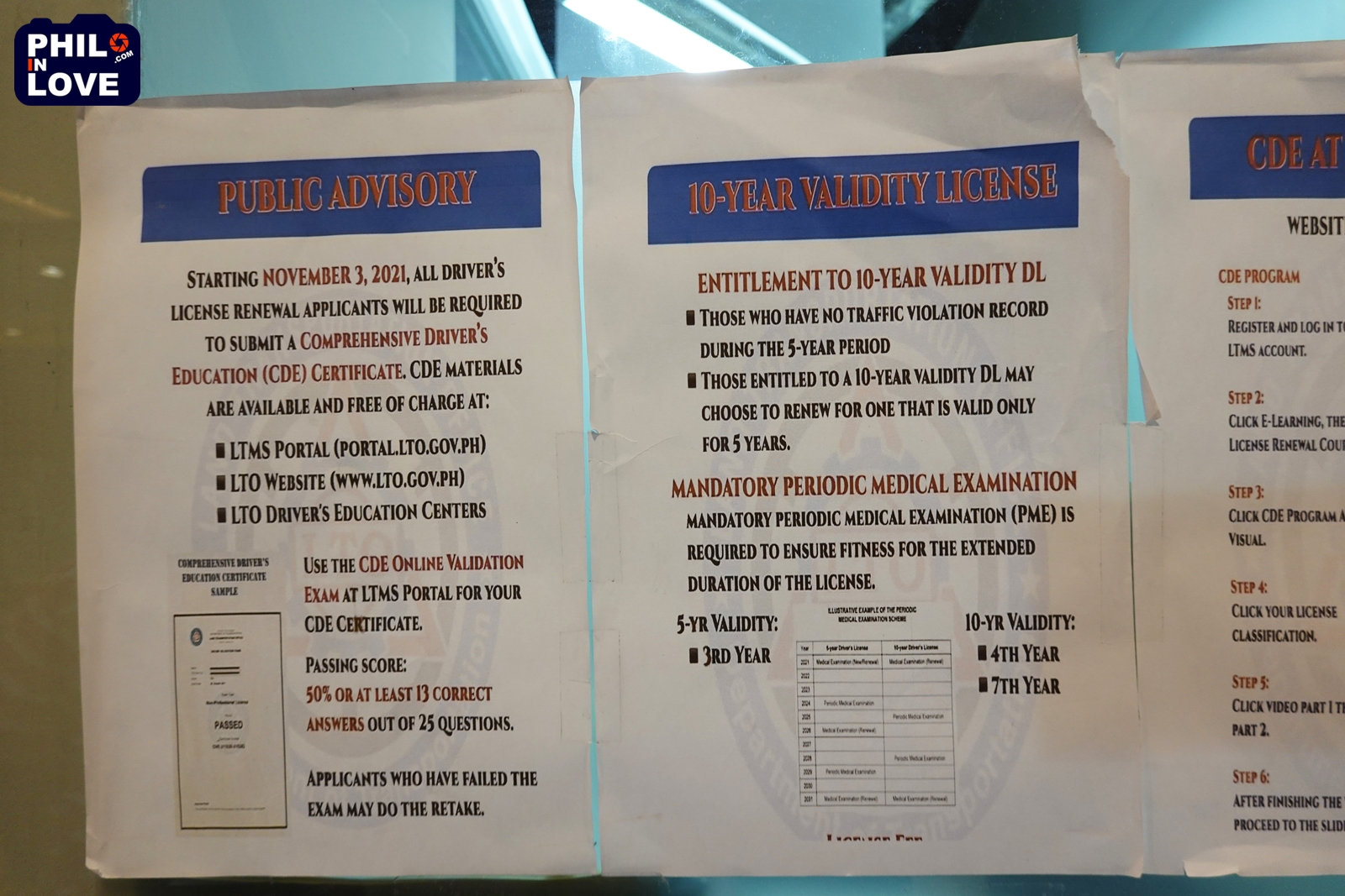 필리핀 LTO(Land Transportation Office)에서는 교통법규 위반 사항이 없는 운전자가 운전면허증을 갱신(리뉴얼)할 경우 유효기간이 10년인 운전면허증 발급을 신청할 수 있도록 하고 있다. 교통법규 위반 사실이 있다면 유효기간이 5년 운전면허증만 신청할 수 있다.