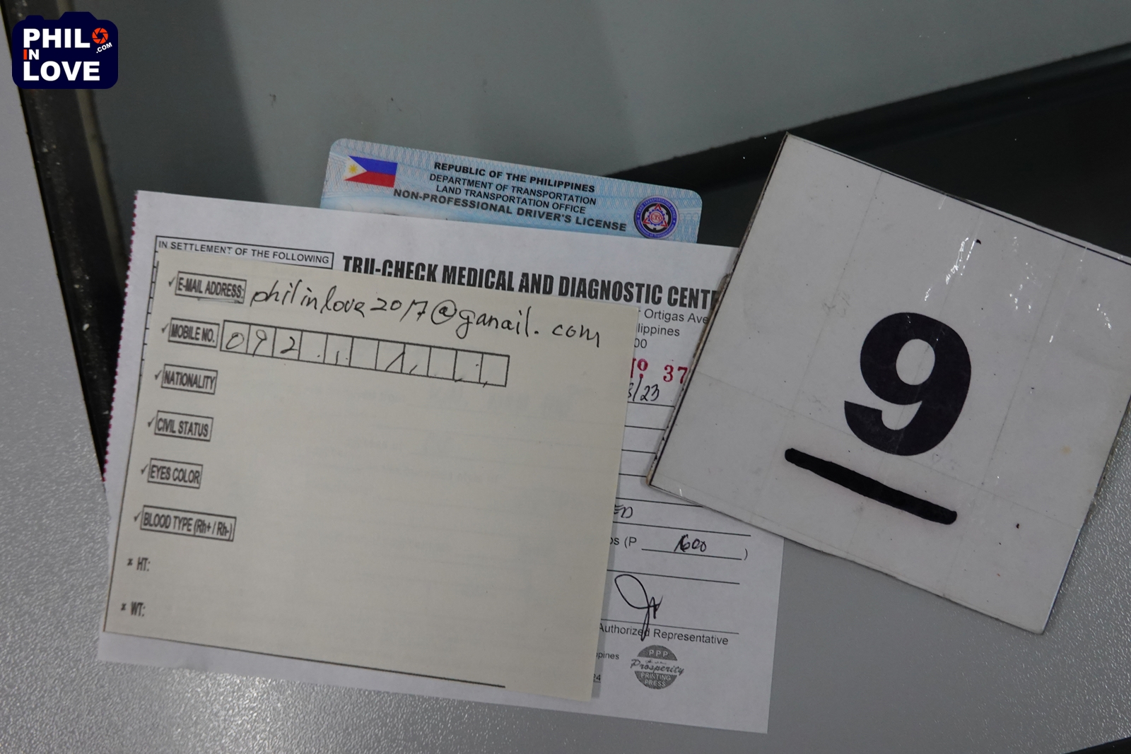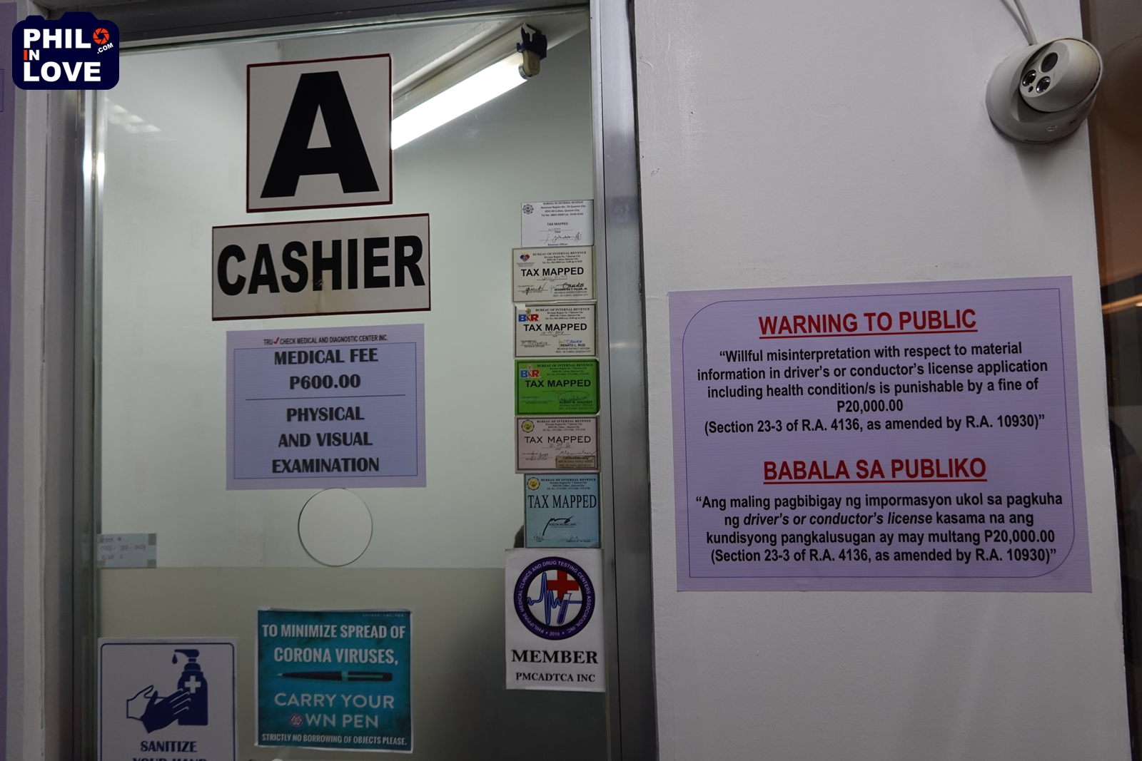 LTO에서 지정한 클리닉(LTO-accredited clinic)에 방문하여 간단한 신체검사(건강검진) 후 건강증명서(Mediacal Certificate)를 발급받아야 한다. 클리닉은 LTO 사무소 근처에서 쉽게 찾을 수 있으며, 검사는 혈압 검사 등 간단한 신체검사로 진행된다. 소변검사는 하지 않는다.