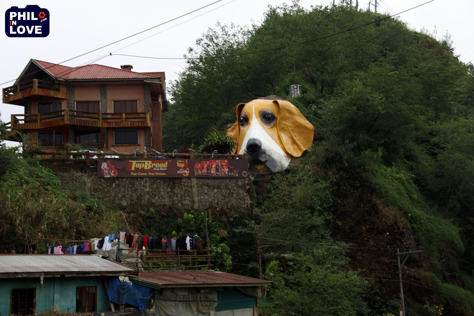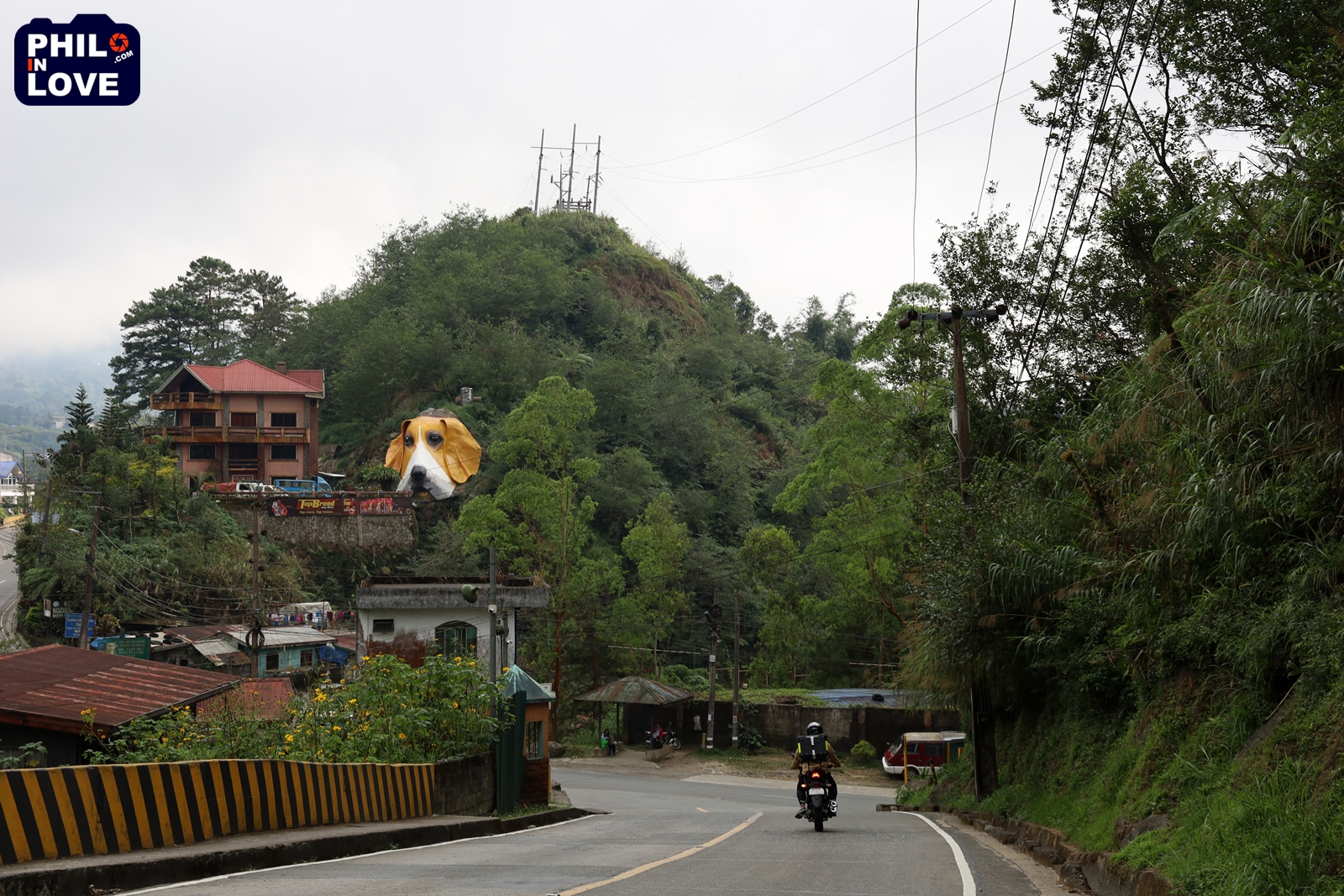 뭔가 복잡해 보이는 풍경을 보고 라트리니다드(La Trinidad)에서 하룻밤 묵겠다는 생각은 재빨리 접었지만, 사가다(Sagada)까지 가려면 점심을 먹어야 했다. 꽤 고심하여 라트리니다드의 풍경을 한눈에 볼 수 있다는 레스토랑을 골랐는데 도무지 주차를 할 수 없었다. 피코 람탕 로드(Pico - Lamtang Rd)의 길은 좁고, 차는 하염없이 오는데 어영부영하다가 그만 길을 잘못 들고 말았다. 사가다로 가려면 왼쪽으로 가야 할 것 같은데 오른쪽으로 가버린 것이다. 차를 돌려서 다시 왼쪽 길로 돌아가면 해결되는 되는 문제이지만, 차가 심각하게 막히고 있었다. 시그널이 좋지 못할 것에 대비하여 글로브와 스마트 유심을 모두 준비해 왔건만 그 어느 것도 되지 않고, 비는 부슬부슬 내리기 시작하고, 대체 어떻게 하면 좋을지 알 수가 없어 마음이 심란한 와중에 점심시간이 훌쩍 지나버렸다. 그런데 산자락을 내려와 길모퉁이를 돌면서 심란하던 마음을 순식간에 물러가게 하는 것을 만났다. 그건 다름 아닌 바셋하운드의 얼굴을 한 조각이었다.