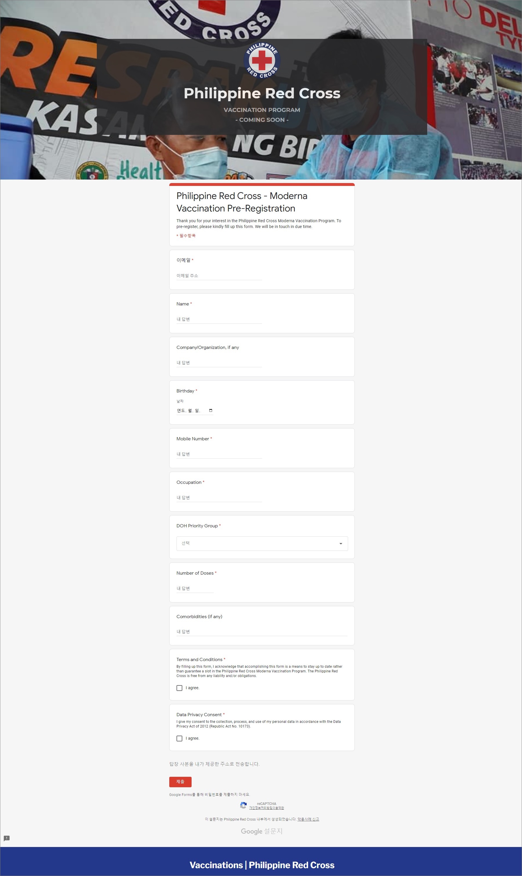 · 필리핀 적십자(Philippine Red Cross) : VACCINATION PORTAL