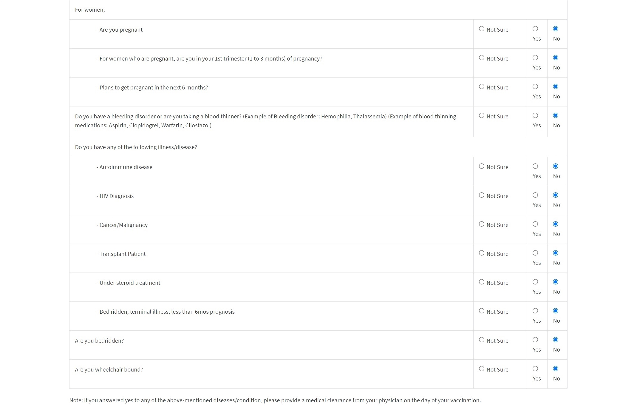 With Co-morbidities? : 기저질환이 있는지 묻는 것으로 No에 체크