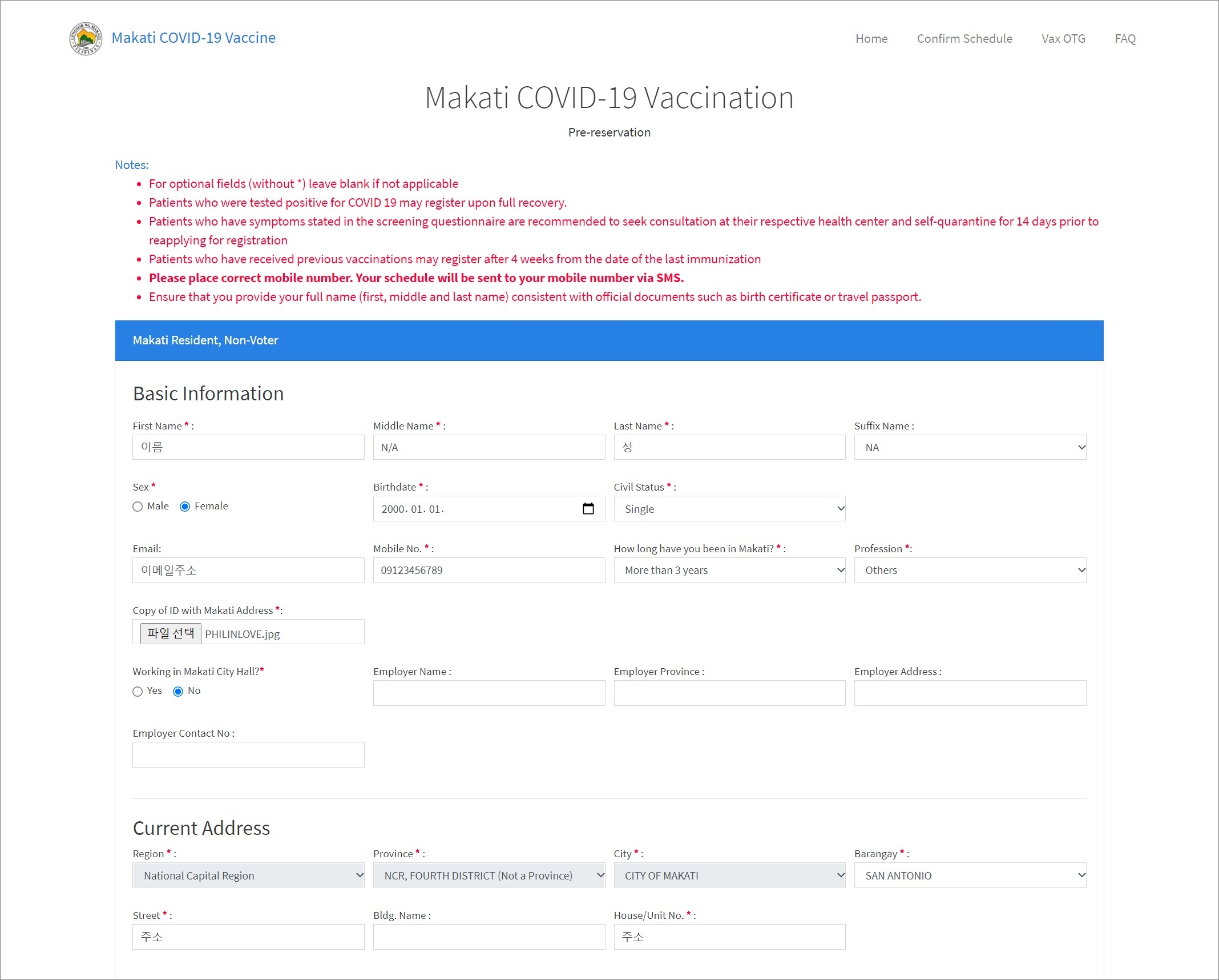 ■ 사이트 바로 가기 : https://www.covid19vaccine.safemakati.com/