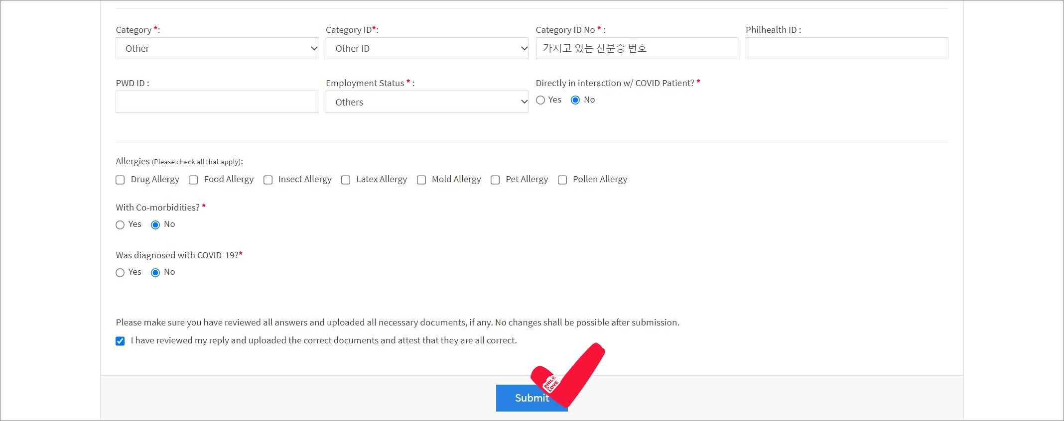 Working in Makati City Hall? : 마카티 시청 근로자인지 묻는 것으로 No에 체크
