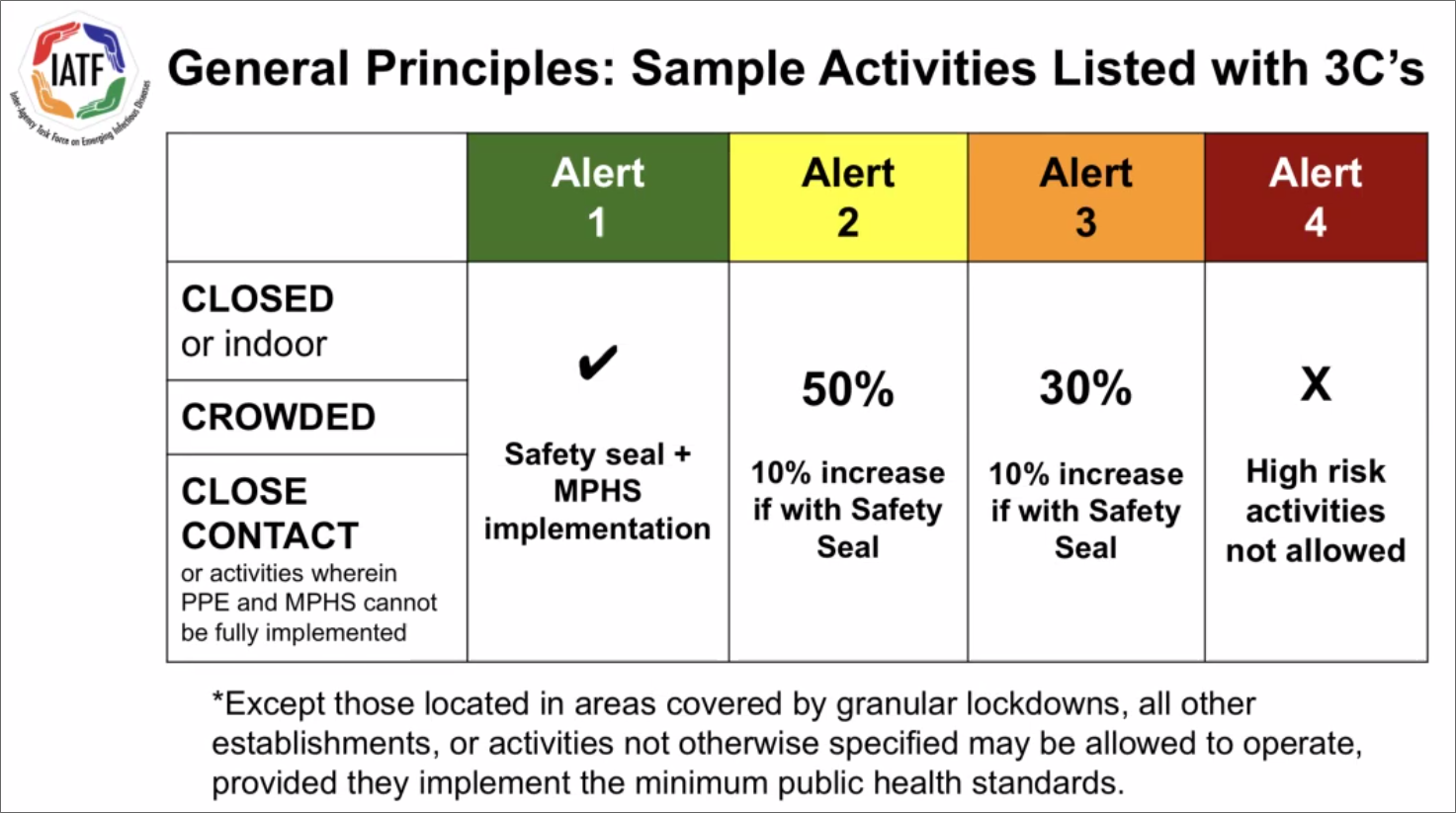 드디어 지난 수요일(9월 22일), 두테르테 대통령은 이제 야외에서는 페이스 쉴드를 착용을 강제화하지 않겠다고 발표했다. 다만 3S지역 내에서는 페이스 쉴드 착용이 여전히 의무화된다. WHO에서 코로나 감염방지를 위해 세 가지 피해야 할 일(Avoid the 3Cs)을 이야기할 때 C는 Crowded places, Close-contact settings, Confined and enclosed spaces를 나타내지만, 필리핀 정부에서 이야기하는 3S지역('C' establishments)은 영어 단어가 살짝 다르다. 폐쇄된 밀폐 공간(Closed), 혼잡한 밀집 공간(Crowded), 밀접 접촉 공간(Close-contact)을 의미한다. 결국 사람이 많은 곳이나 건물 내에서는 여전히 페이스 쉴드를 써야 한다는 이야기이다.
