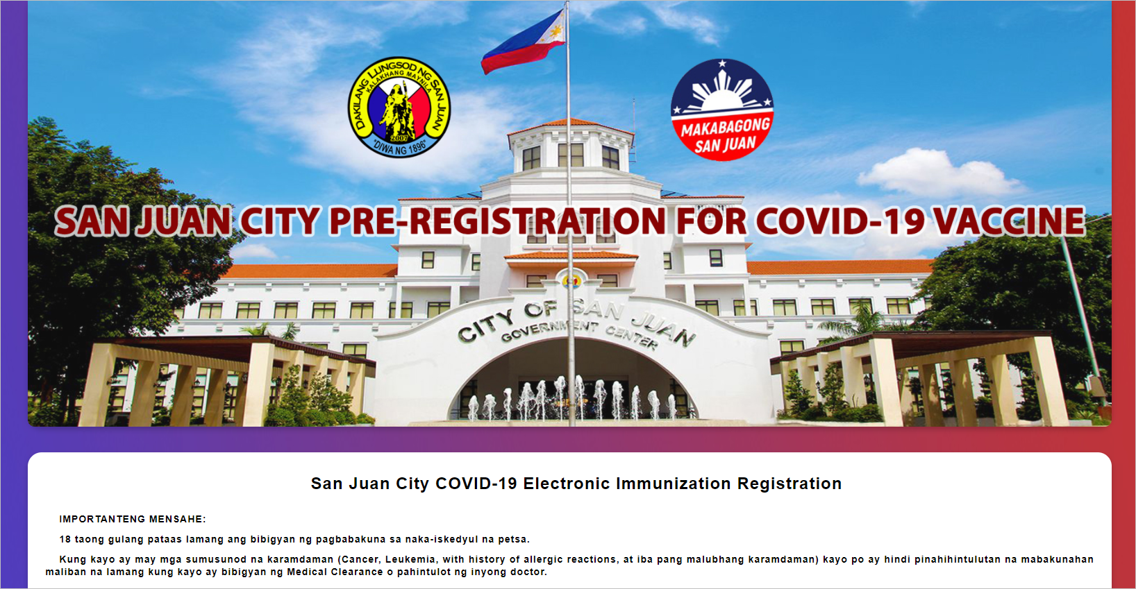 - 백신 접종 신청 : vaxreg.sanjuancity.gov.ph/vaccine_registration/public/