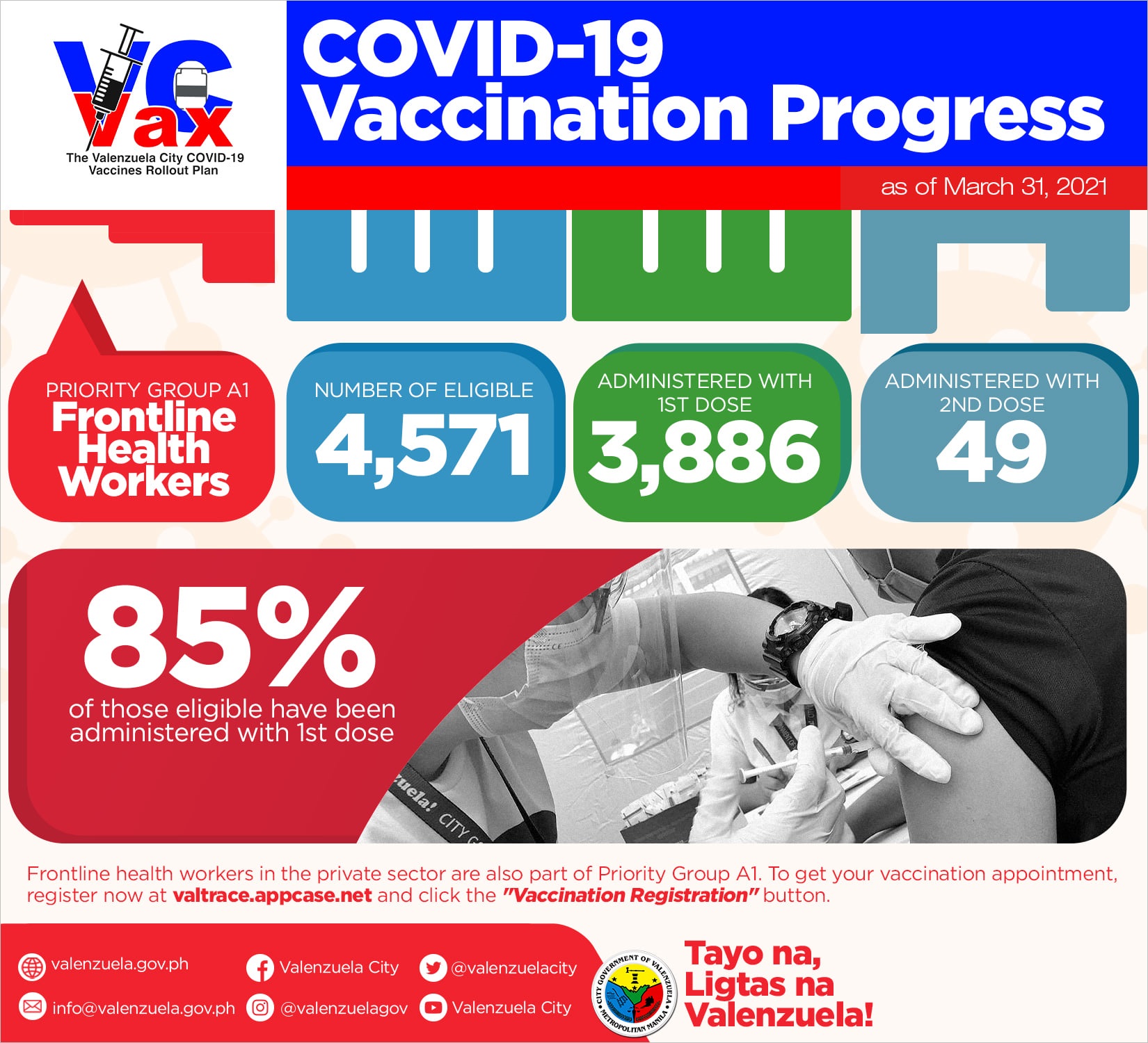 ■ 발렌수엘라(Valenzuela City)에서는 주민의 71%(약 32만 명)에게 백신을 접종하는 것을 목표로 하고 있다. 64만 도즈의 아스트라제네카 백신의 구입을 주문한 상황이다.