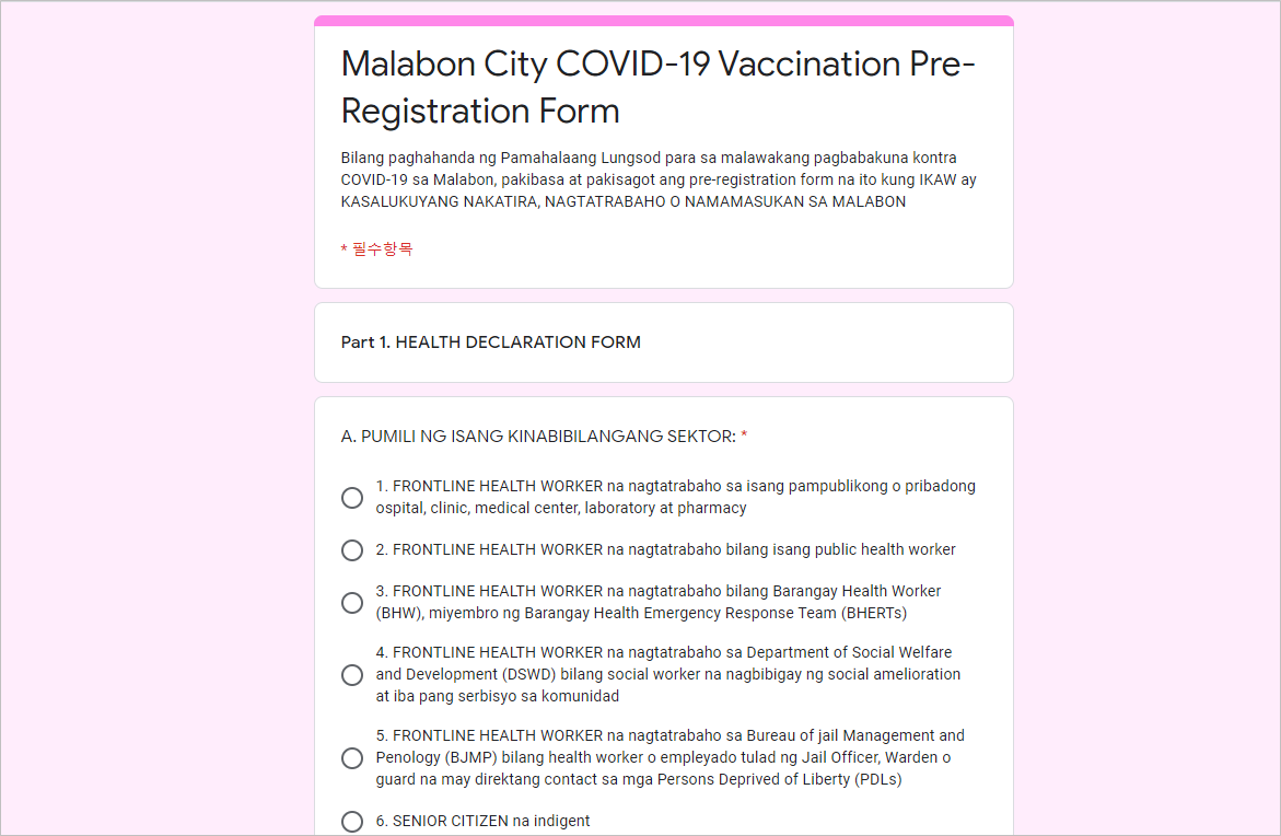 - 백신 접종 신청 : covax.navotas.gov.ph/