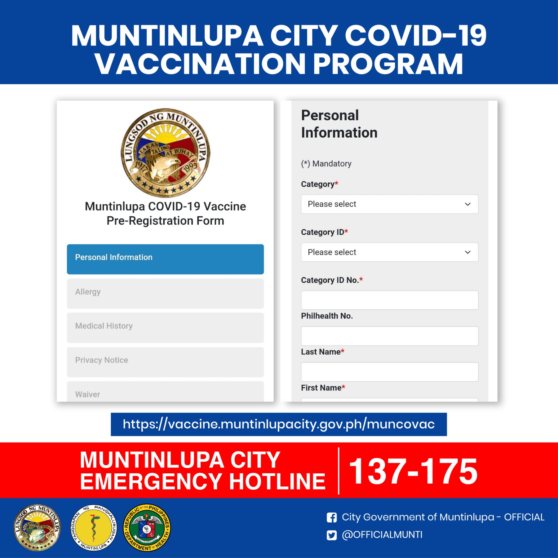 - 백신 접종 신청 : https://vaccine.muntinlupacity.gov.ph/muncovac