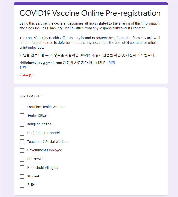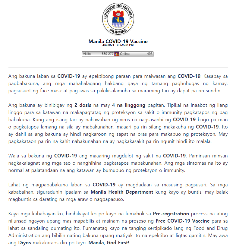 - 백신 접종 신청 : www.manilacovid19vaccine.ph/home.php