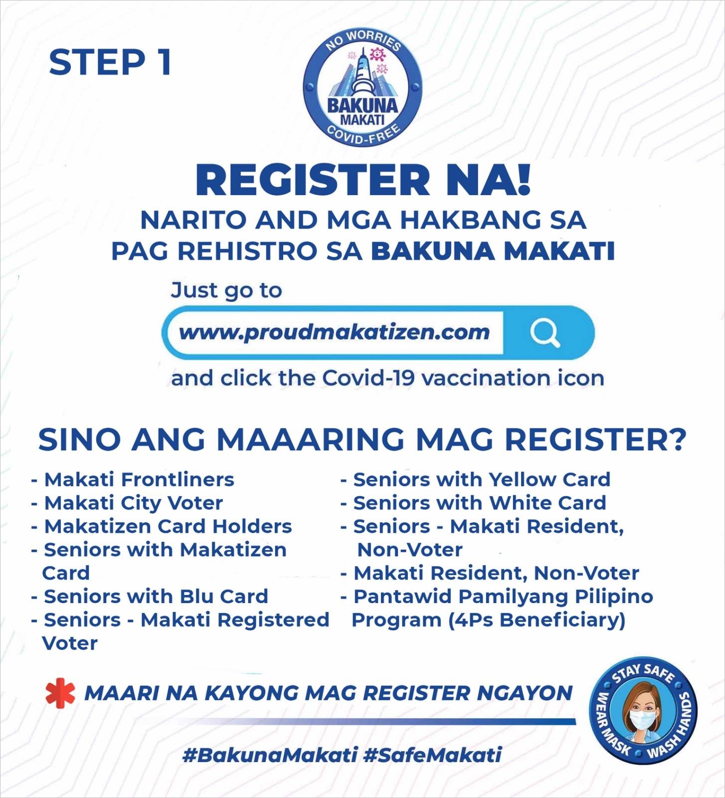 - 백신 접종 신청 : www.covid19vaccine.safemakati.com/