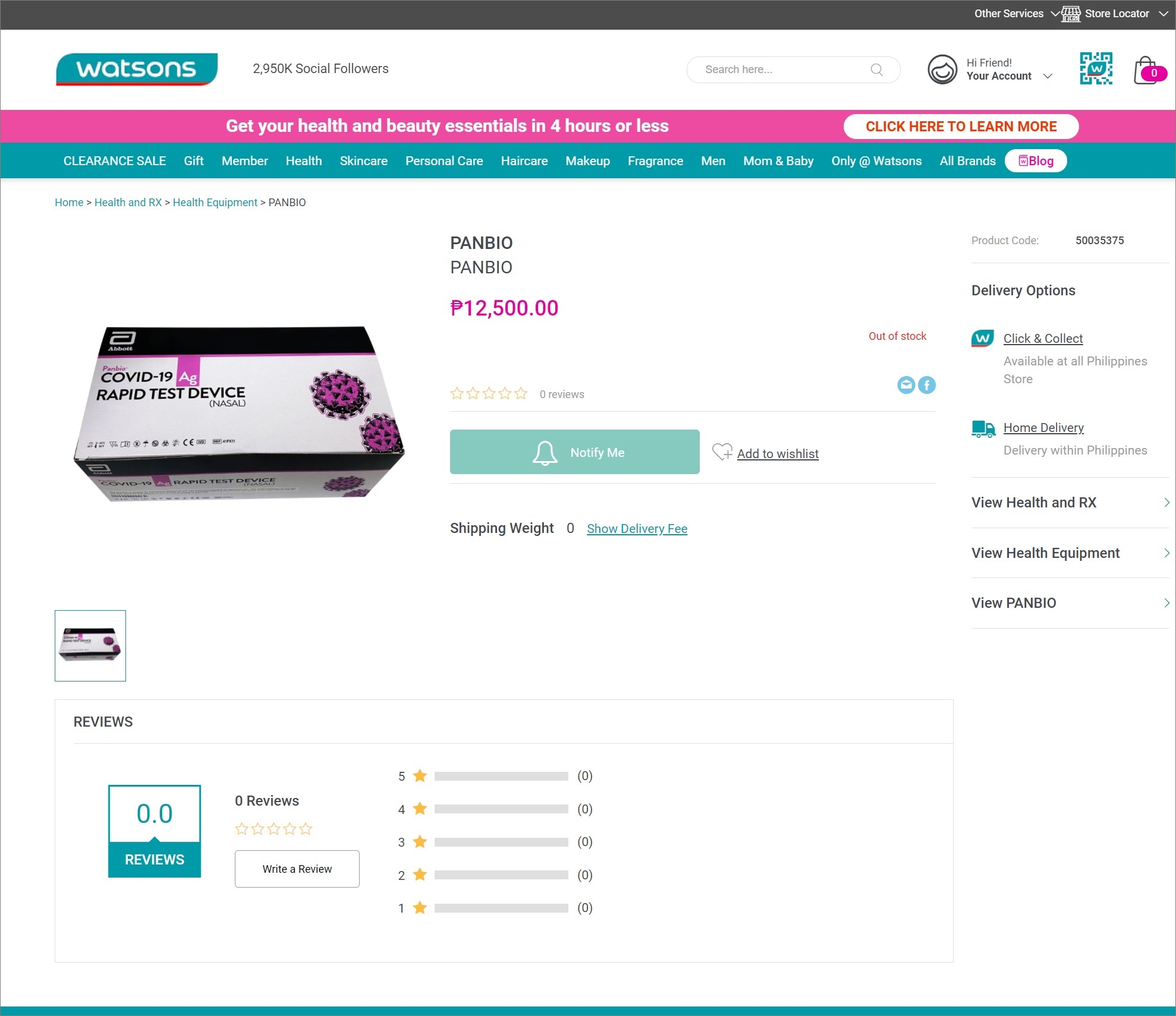 필리핀에서도 약국, 인터넷 등을 통해에서 코로나19 자가진단 키트를 구할 수 있을까?