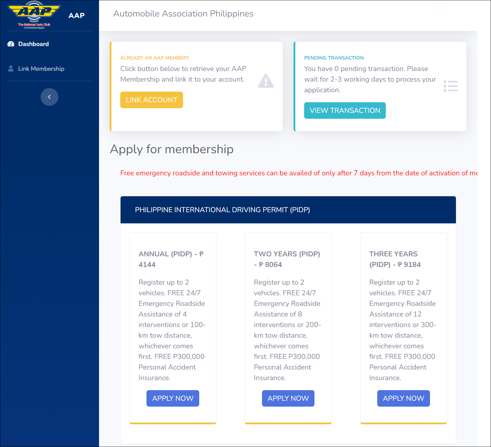 AAP Member's Portal 웹사이트: https://aap.org.ph/services/international-driving-permit