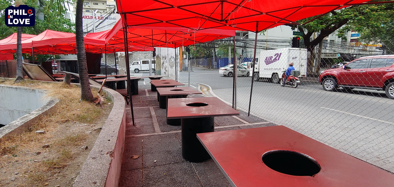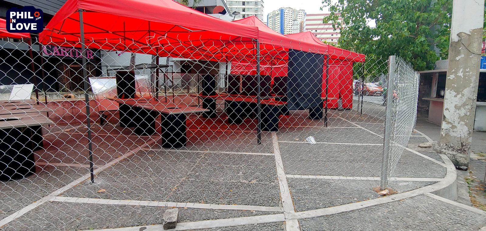 볼일이 있어 리틀도쿄 근처를 지나다가 마카티 시네마 스퀘어(Makati Cinema Square)에 예전에는 보지 못했던 철조망이 길가에 가득 만들어져 있는 것을 보았다. 꽤 촘촘하게 잘 만들어진 철조망은 아슬아슬하게 도로 경계선까지 설치되어있었다. 그리고 길모퉁이를 가득 차지하고 있는 낯선 철조망 안에는 네모난 식탁이 가득했다.