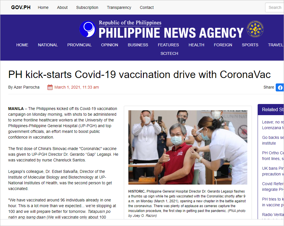 [필리핀 코로나19 백신] 시노백의 코로나백으로 백신 접종 시작