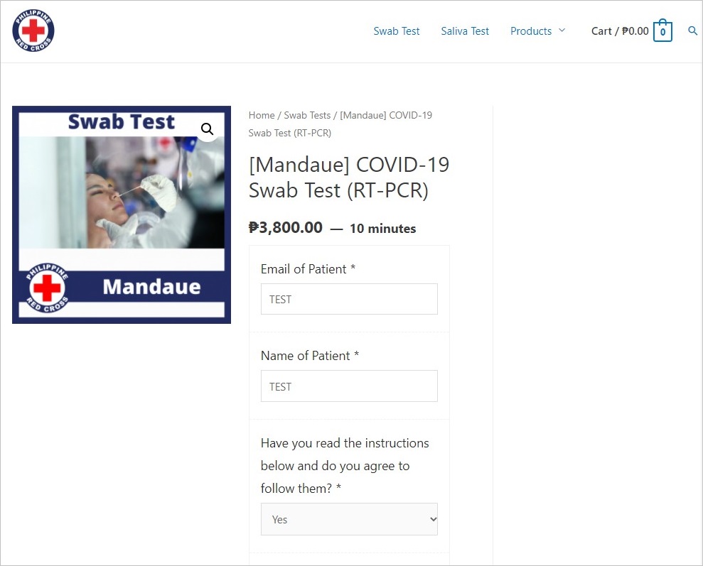 - 예약하기(Book a Swab Test) : book.redcross.org.ph/index.php/book-a-swab-test/