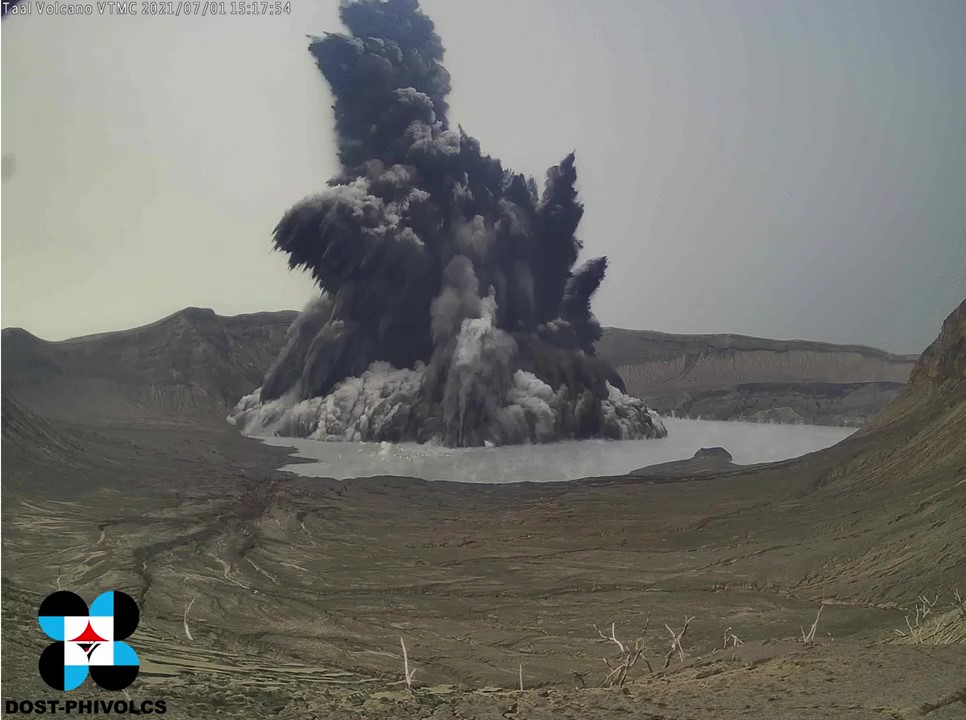 필리핀 지진화산연구소(Phivolcs)에서 2021년 7월 1일을 기점으로 따가이따이 따알 화산(Taal Volcano)의 경보 수준을 3단계로 상향 조정했다. 오늘 오후 3시 16분부터 3시 21분 사이 약 5분 동안 따알화산 분화구 주변에서 수증기마그마성 분출이 관찰됨에 따라 화산 경보 단계를 높인 것이다. 수증기마그마성 분출(Phreatomagmatic eruption)은 마그마가 물과 접촉할 때 물리적 상호작용에 의해 발생하는 분출 활동을 의미한다.