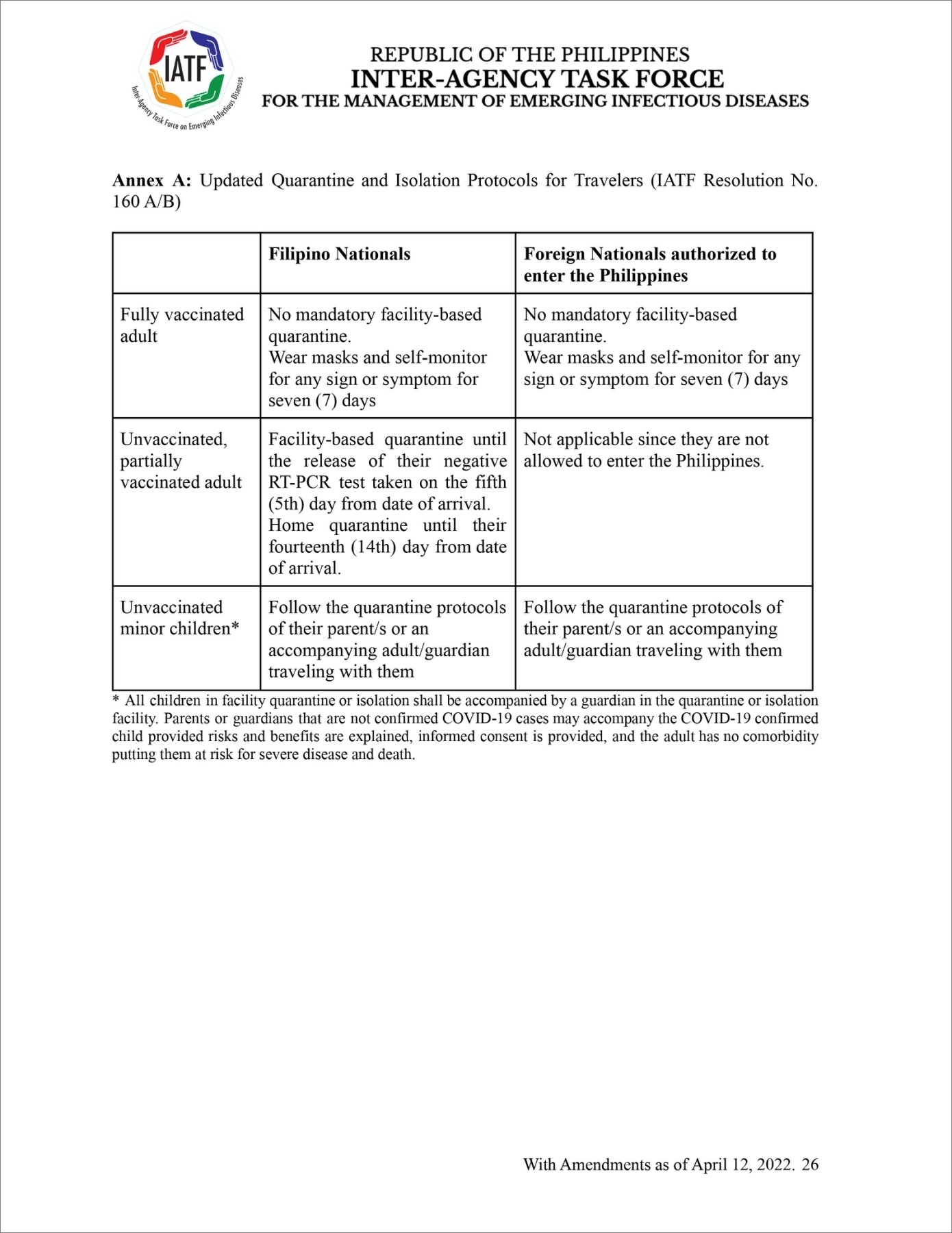 · Presidential Communications : Guidelines on the nationwide implementation of Alert Level System for COVID-19 response as of April 12, 2022.