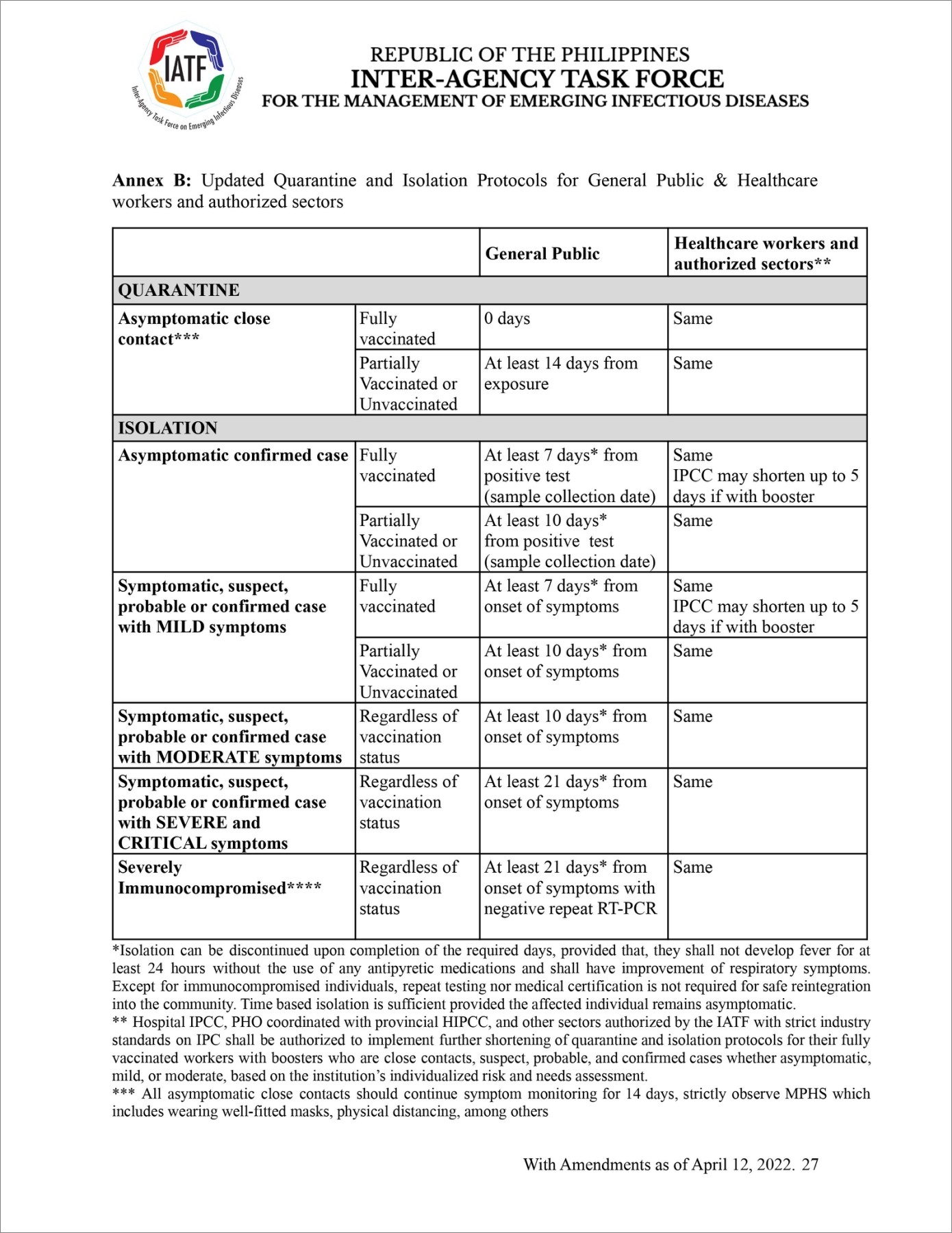 · Presidential Communications : Guidelines on the nationwide implementation of Alert Level System for COVID-19 response as of April 12, 2022.