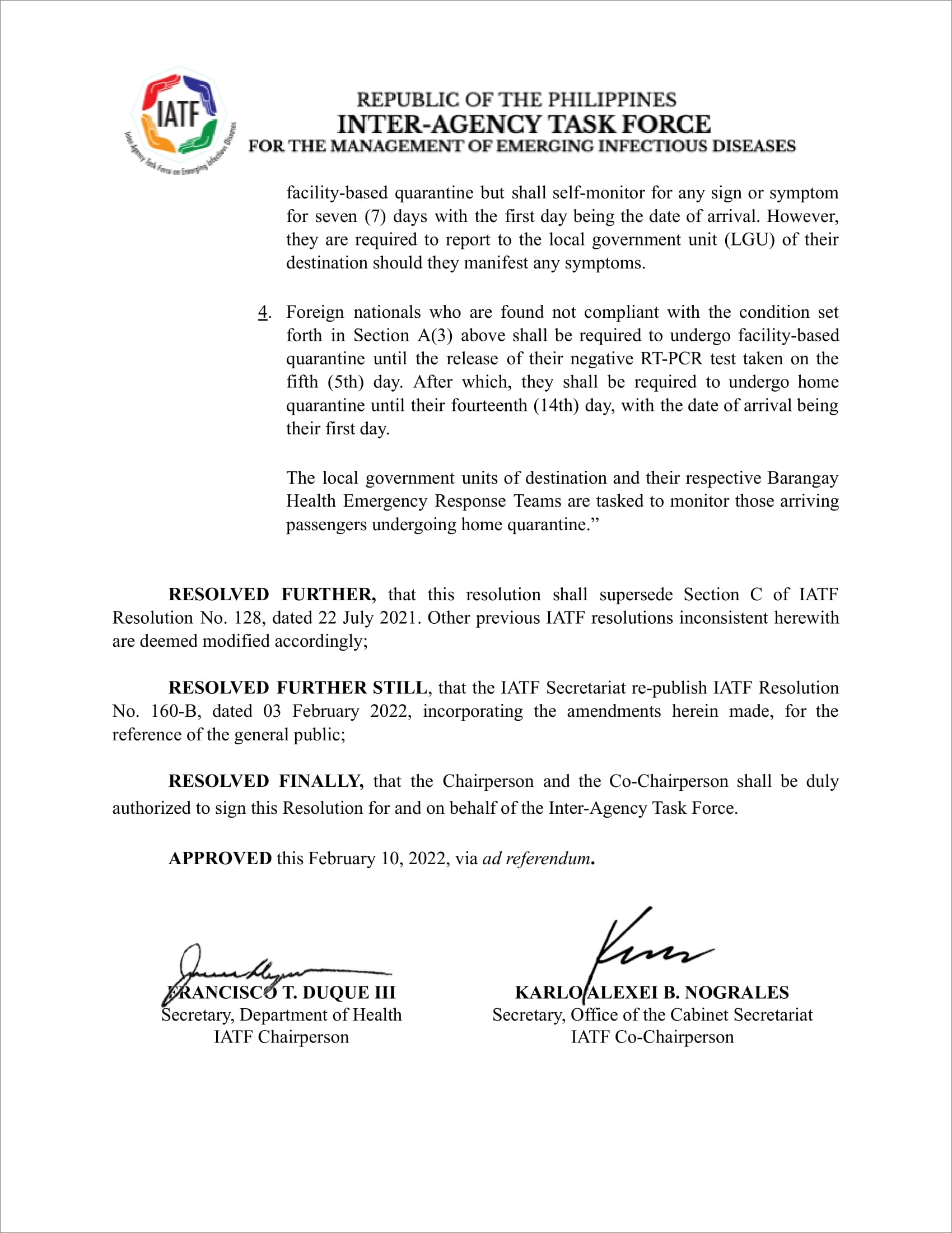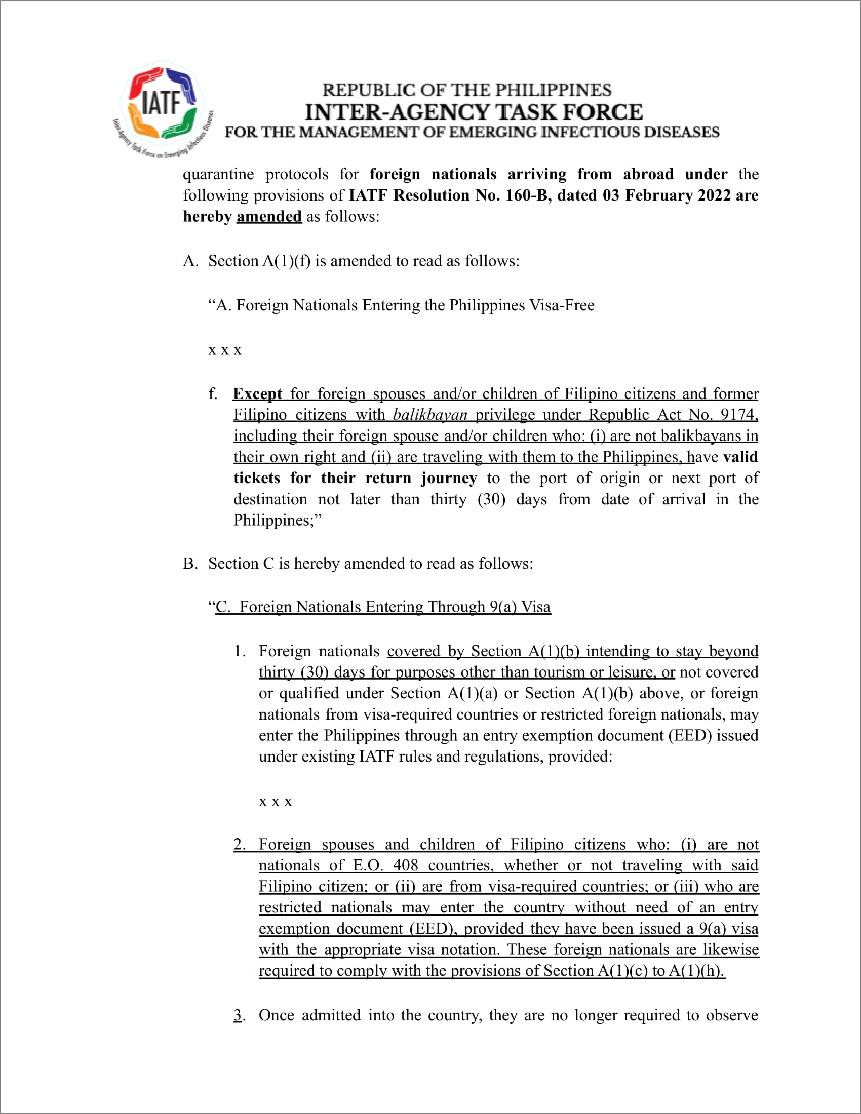 · Official Gazette of the Republic of the Philippines : IATF Resolution No. 160-D