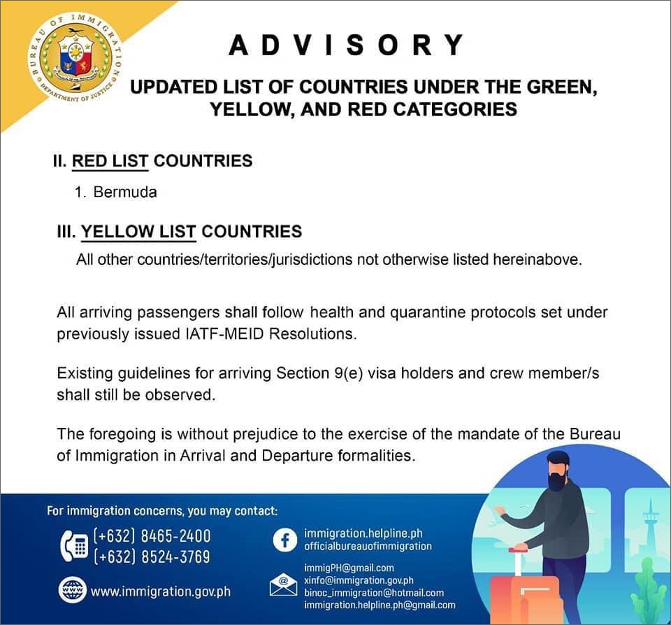 · 필리핀 이민국 : Bermuda in PH’s Red List until October 15