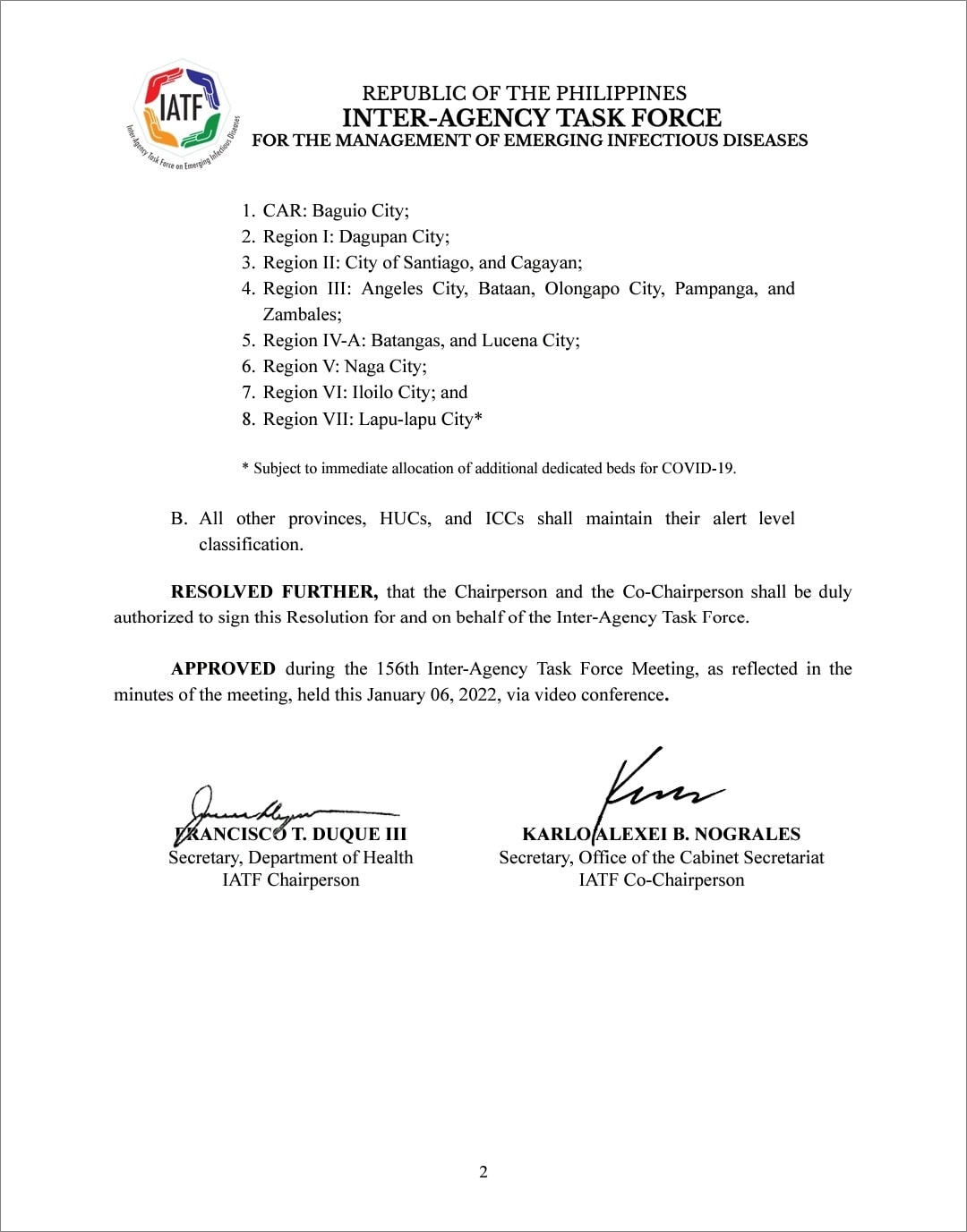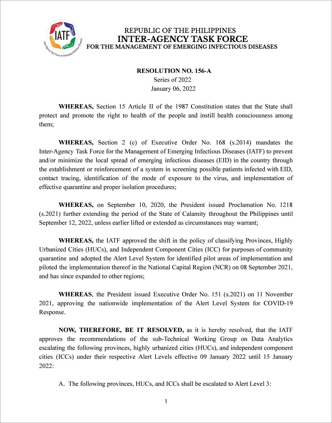 · Presidential Communications : IATF-EID Resolution No. 156-A