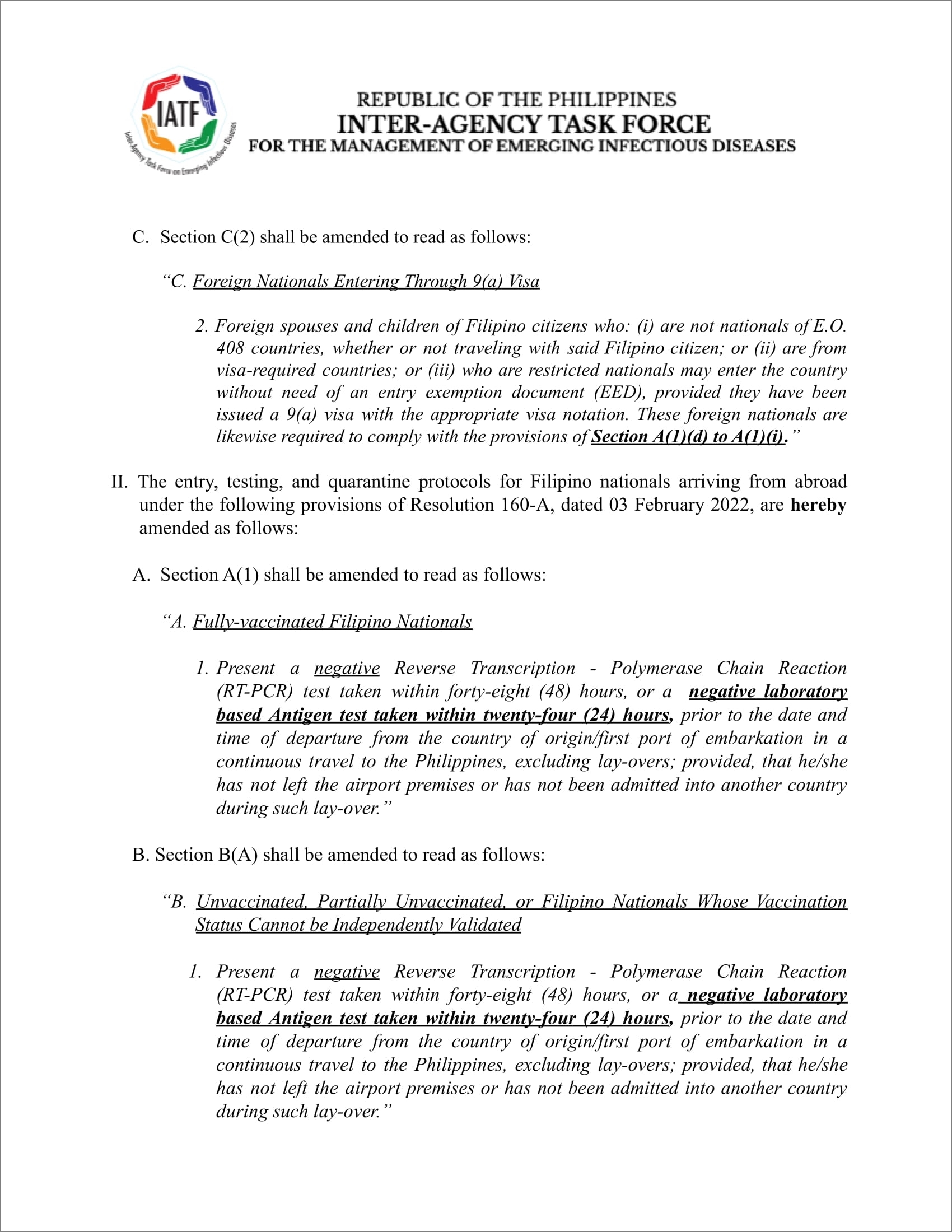 필리핀 입국 시 신속항원검사를 통한 음성확인서도 사용 가능