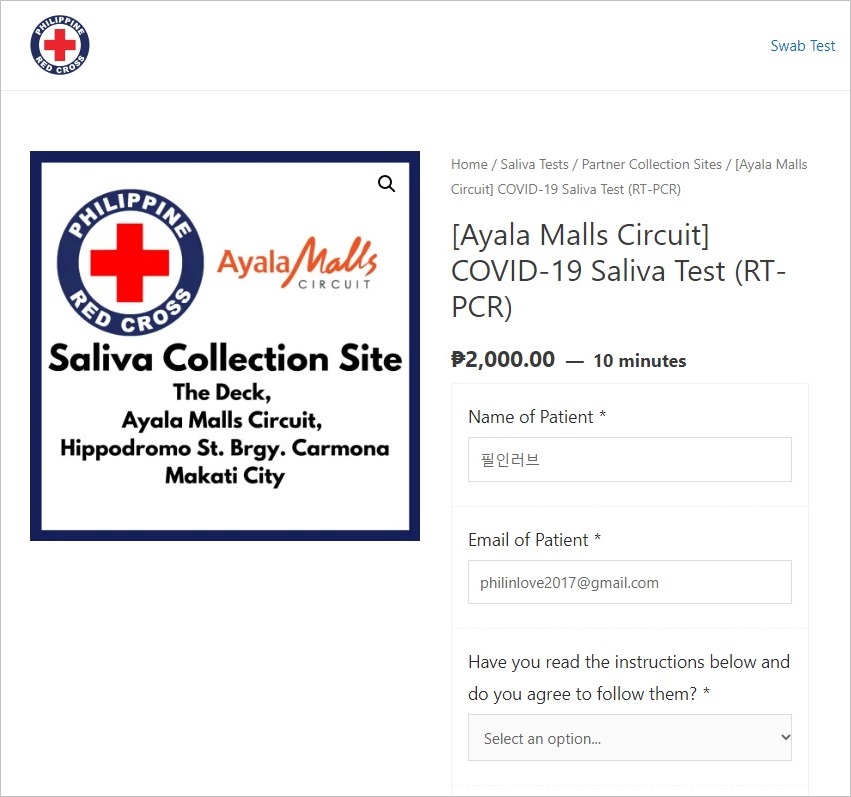 - 필리핀 적십자(PRC) 웹사이트 바로가기: book.redcross.org.ph/index.php/book-a-saliva-test/