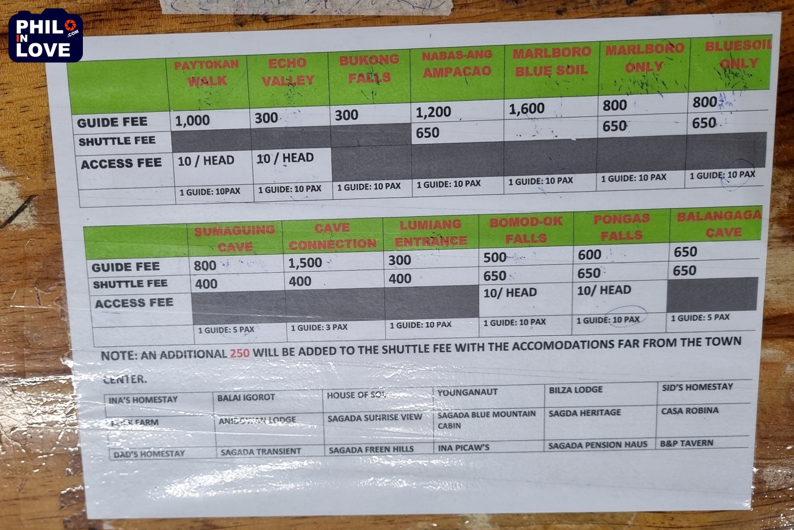 [필리핀 사가다 여행] 관광안내소와 데이투어(여행 가이드) 비용