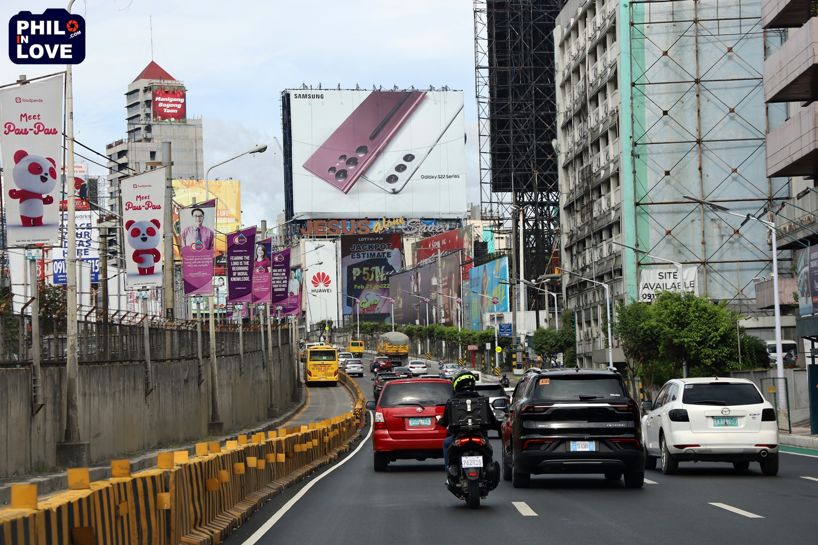 마닐라 EDSA 거리에 붙은 삼성 핸드폰 빌보드 홍보물