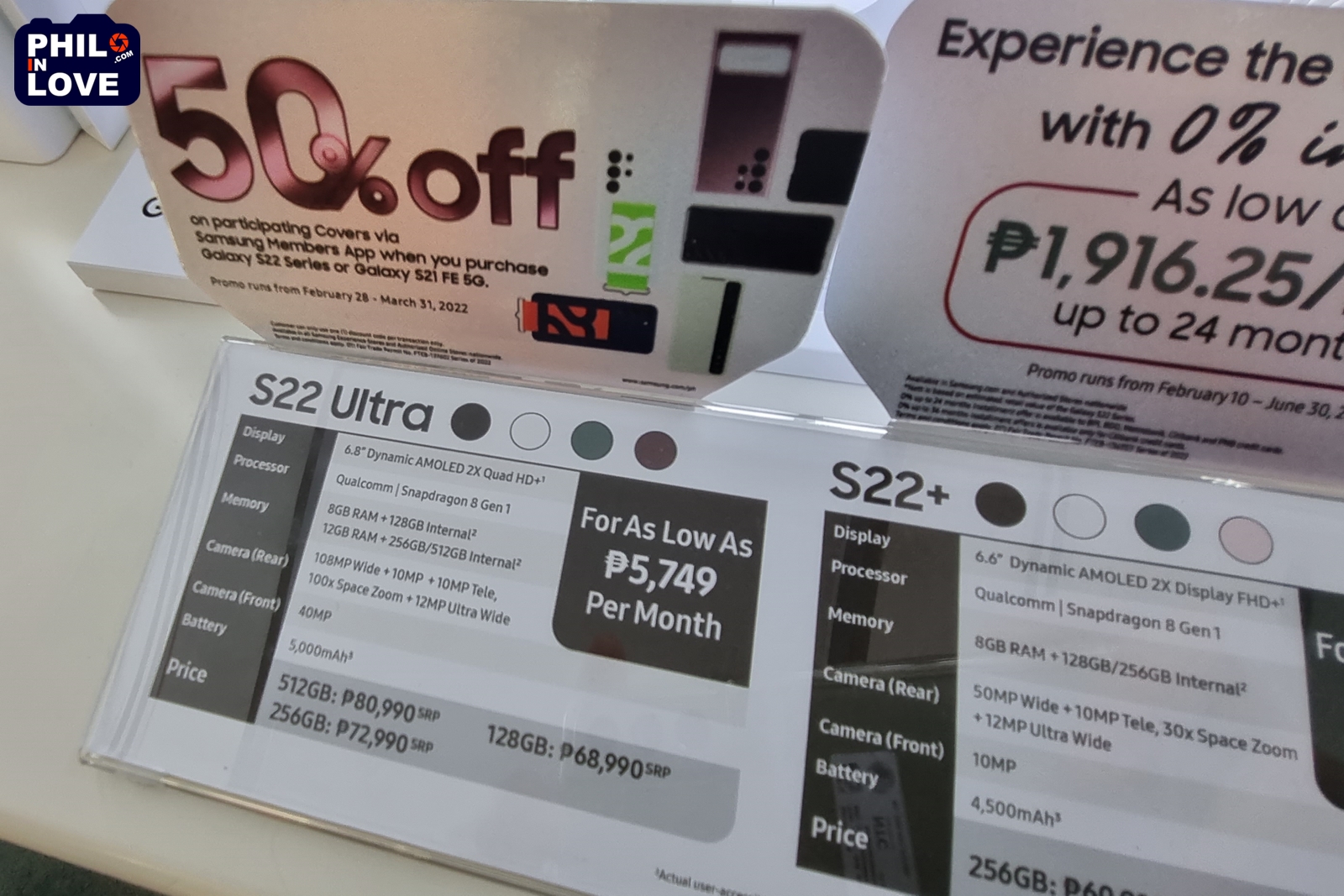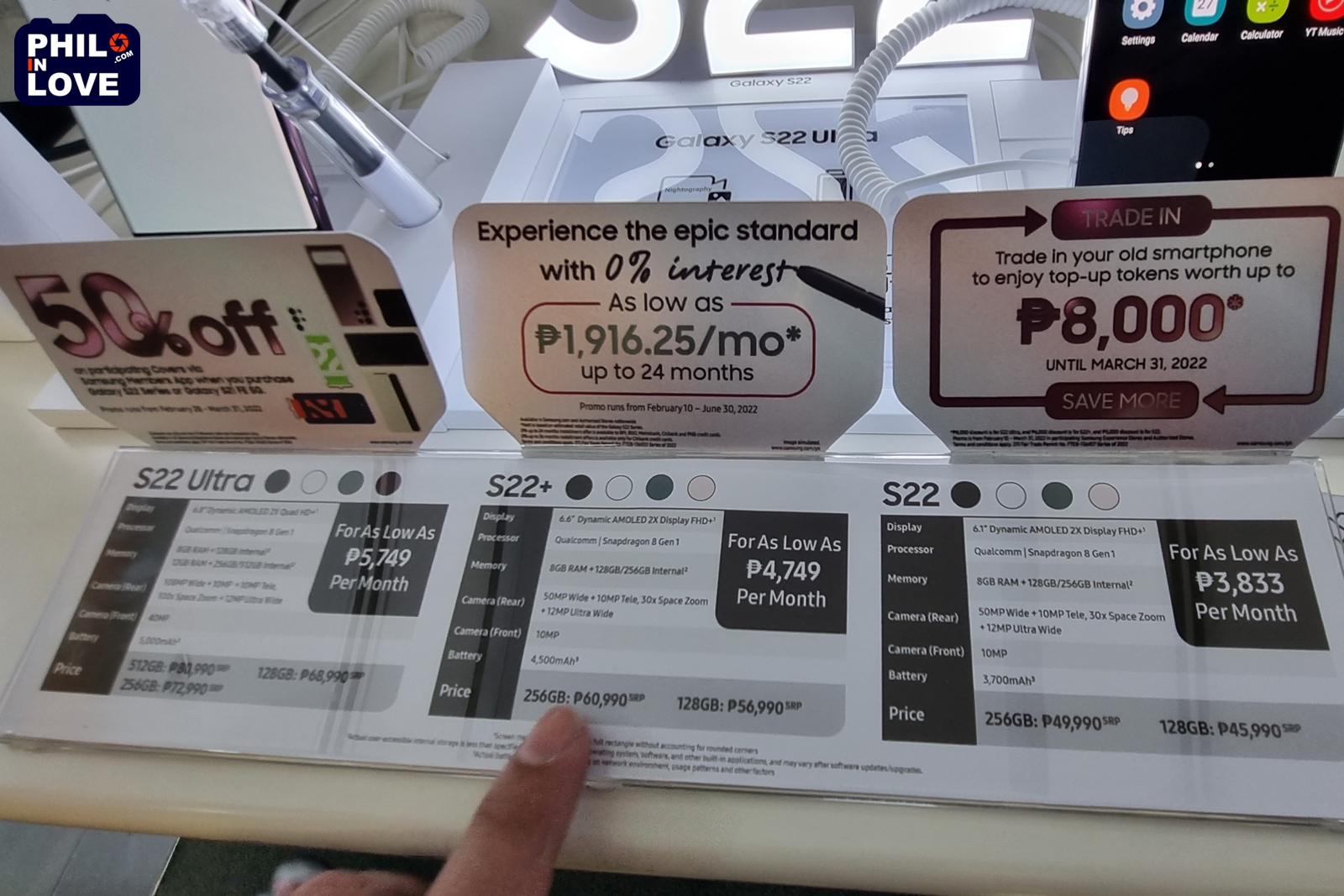 필리핀 삼성전자에서 판매 중인 갤럭시 S22 Ultra와 갤럭시 S22+의 가격