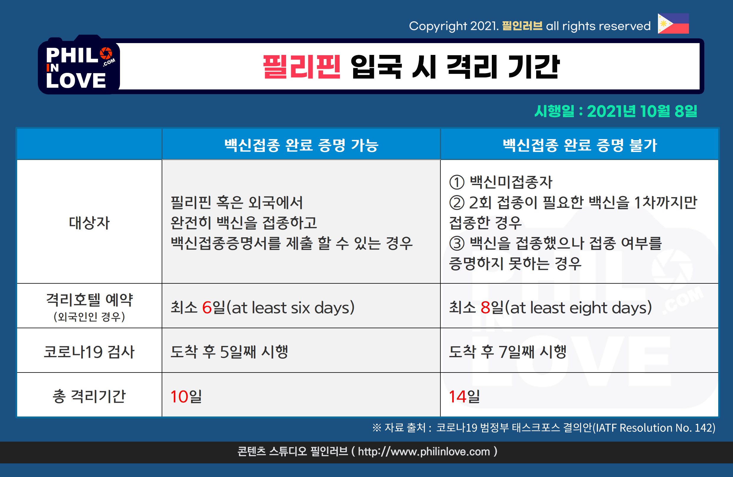 [필리핀 입국] 코로나19 백신 예방접종증명서 제출 시 격리기간 단축