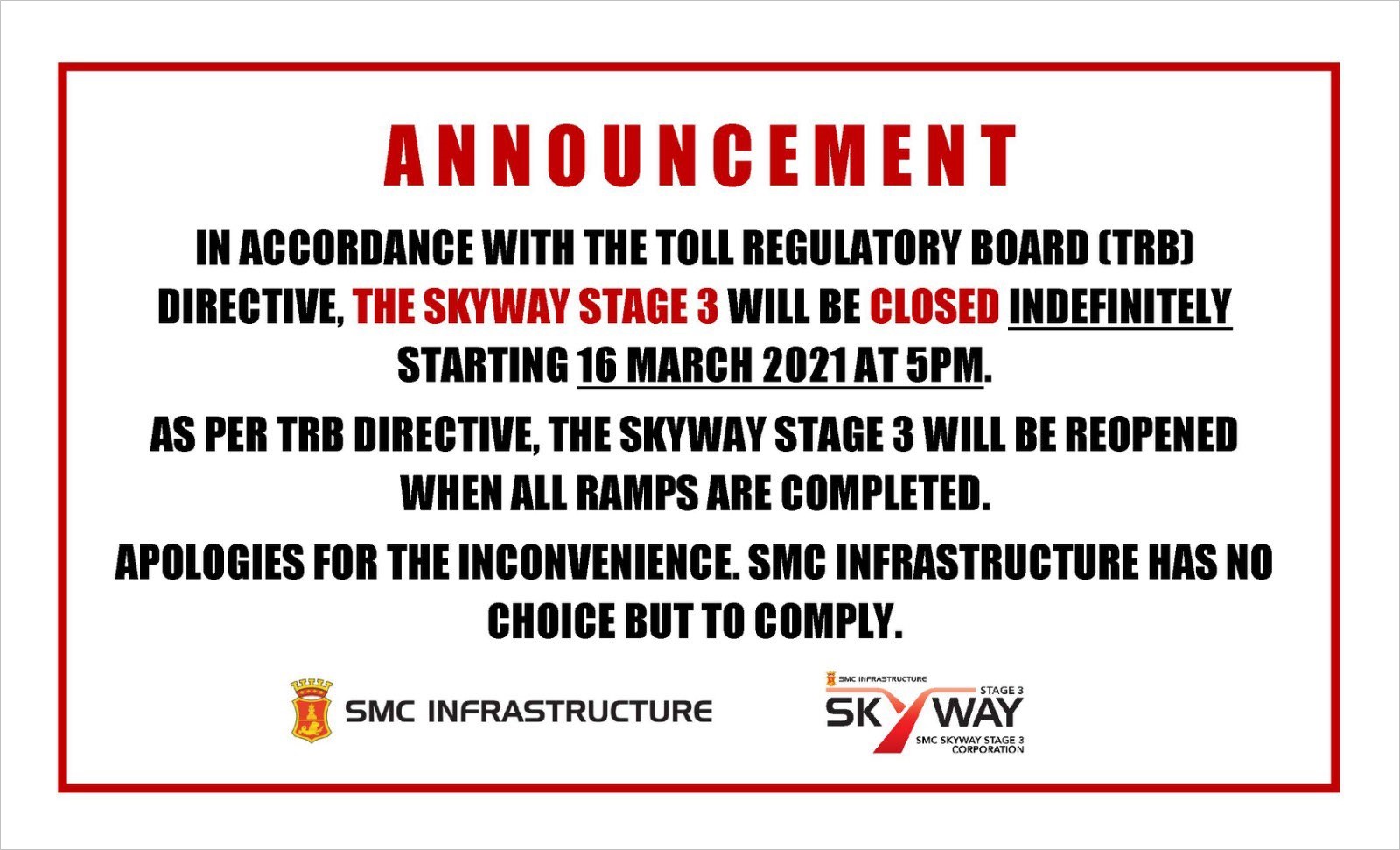 news.abs-cbn.com/news/03/16/21/skyway-stage-3-closed-indefinitely-starting-tuesday