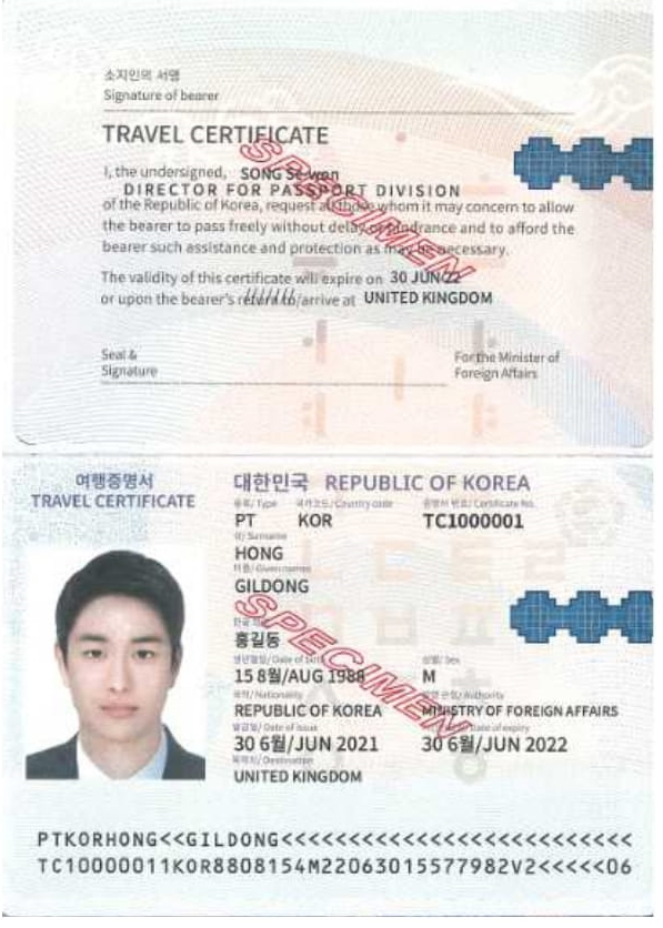 [대한민국 여권] 비전자여권 - 여행증명서(Travel Certificate)