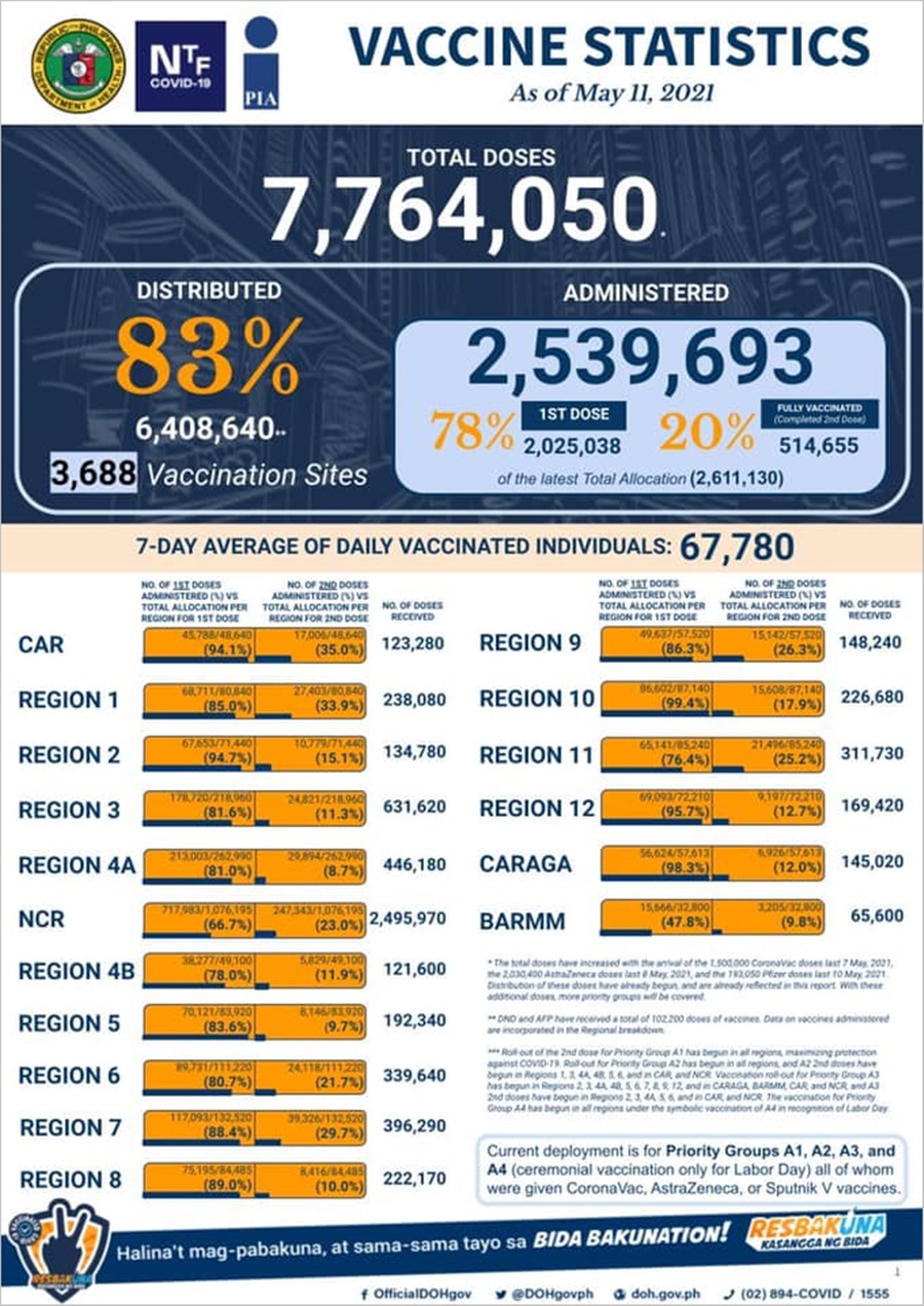 · National Task Force Against Covid19 : VACCINE ROLLOUT UPDATE: 12 May 2021