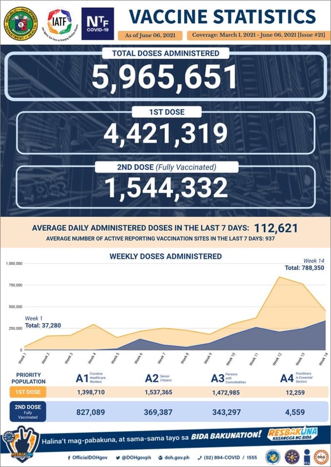 [코로나19 백신] 필리핀 백신 접종 현황(2021년 6월 6일 현재)