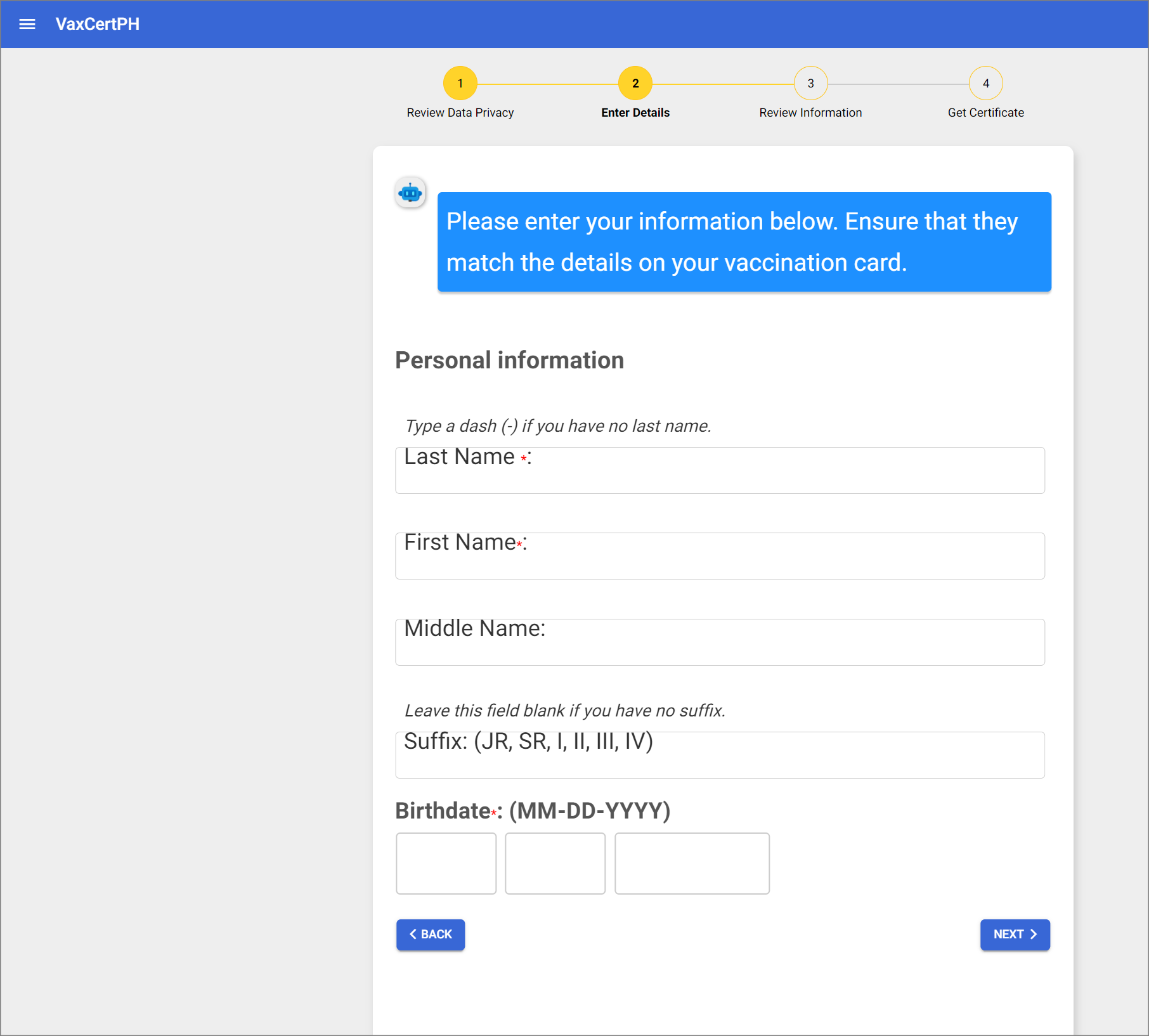 - 웹사이트 : https://vaxcert.doh.gov.ph/
