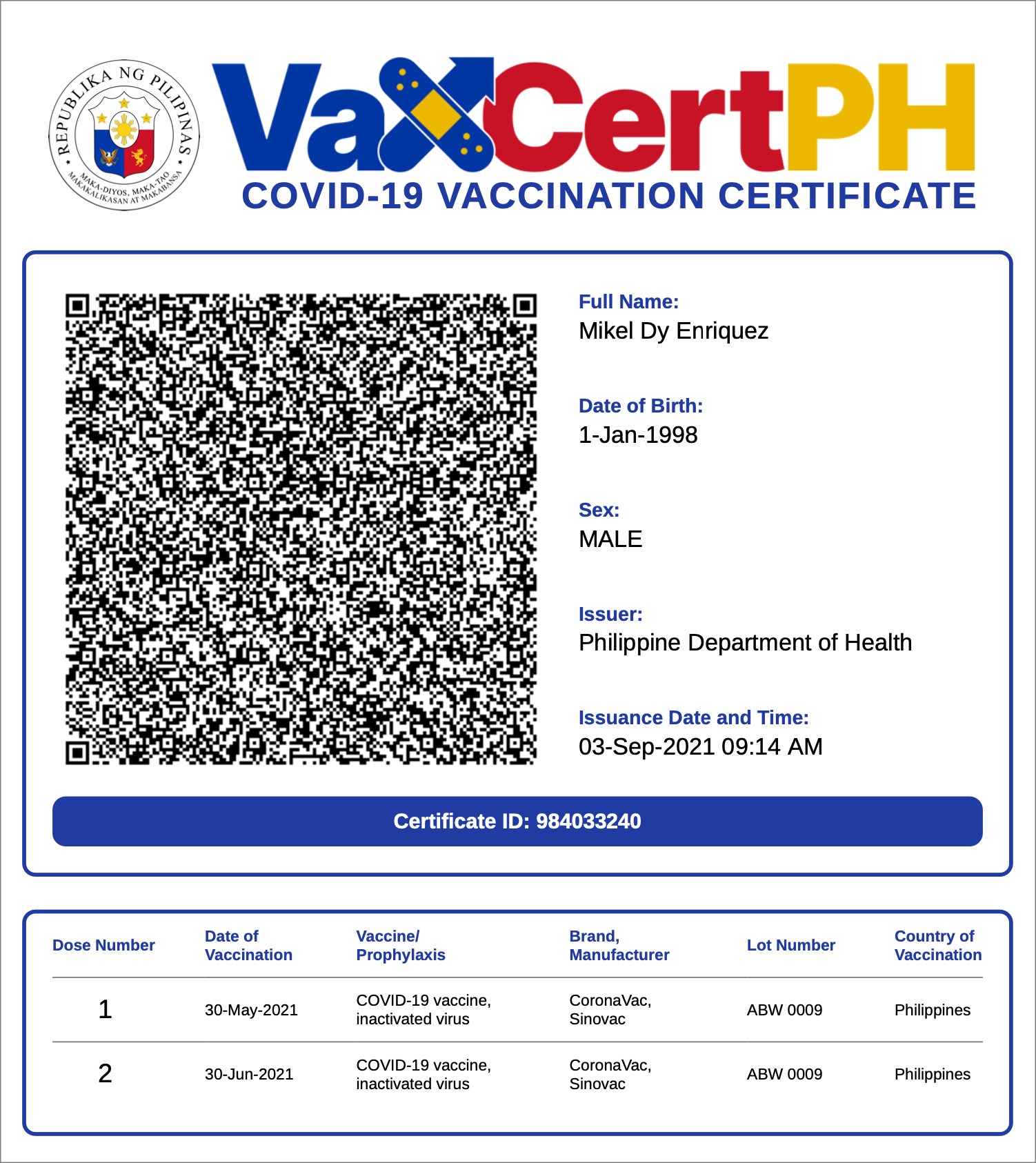가장 간단한 방법은 VaxCertPH라는 이름의 예방접종증명서를 발급받는 방법이다. 문제는 이 백신접종을 주관한 지방정부(LGU)에서 VaxCertPH에 데이터 입력을 하지 않은 경우이다. 그런 경우 VaxCertPH 웹사이트로 백신접종이력이 있음을 밝히고 확인 요청을 해야만 한다.