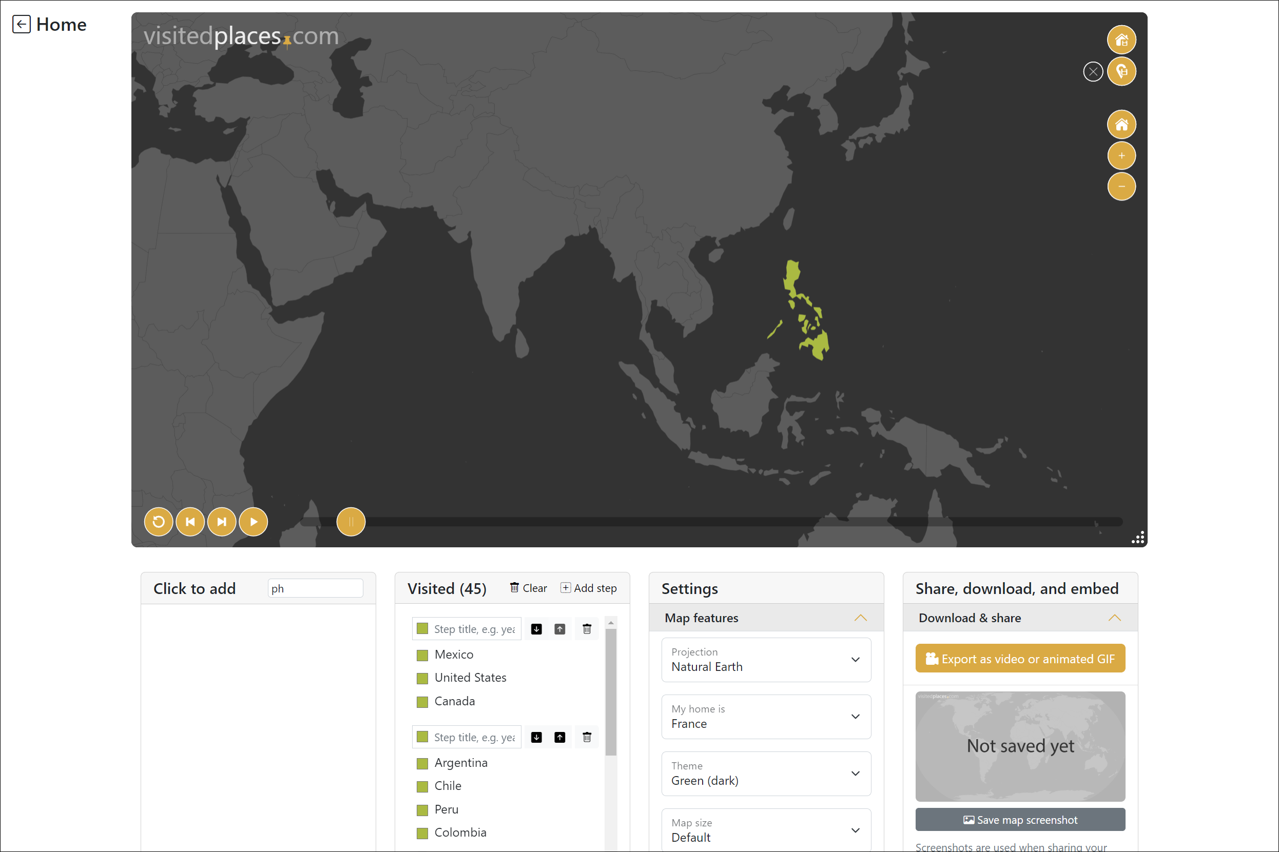 해외여행한 나라/도시를 체크하여 지도에 표시할 수 있는 사이트