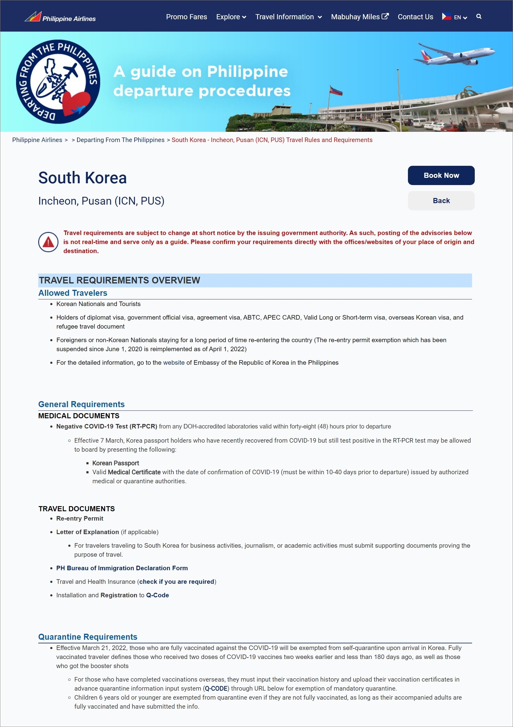 출처 : https://www.philippineairlines.com/en/ph/home/covid-19/DepartingFromThePH/SouthKorea
