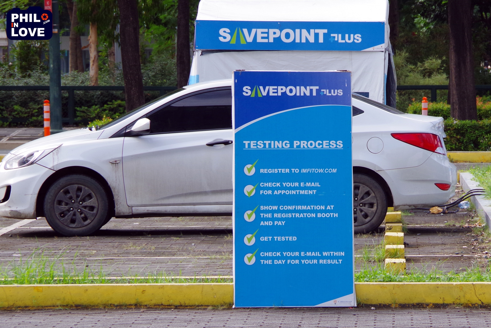 코로나19는 주차장에 차 대신 코로나19 검사실이 자리를 잡게끔 했다. 요즘 보니파시오 세다 호텔 근처에 있는 주차장을 잔뜩 차지하고 있는 것은 세이브 포인트 플러스(SAVEPOINT Plus)라는 곳에서 운영하는 코로나19 검사실이다. 이곳에서는 드라이브스루(차량 탑승) 또는 홈서비스 방식으로 코로나19 검사 서비스를 제공하고 있는데, 예약 손님만을 대상으로 하기에 한적한 분위기에서 검사를 받을 수 있다. 단, 이곳에서는 신속진단법(Rapid Test)의 검사 방식으로만 검사가 가능하다. 신속진단법(간이진단법)은 임신 진단 키트로 임신 여부를 확인하는 것과 비슷한 방식의 검사 방법으로 검사 비용이 저렴한 편이지만 유전자 진단법(RT-PCR)보다 정확성이 떨어지는 단점이 있다.