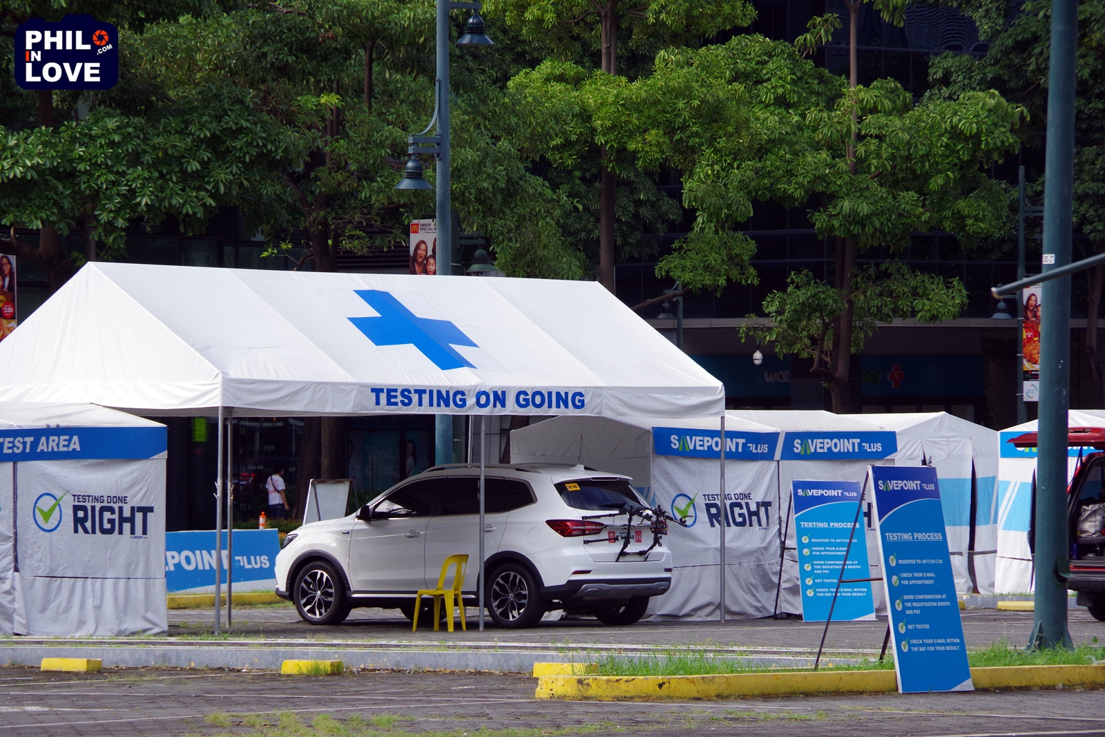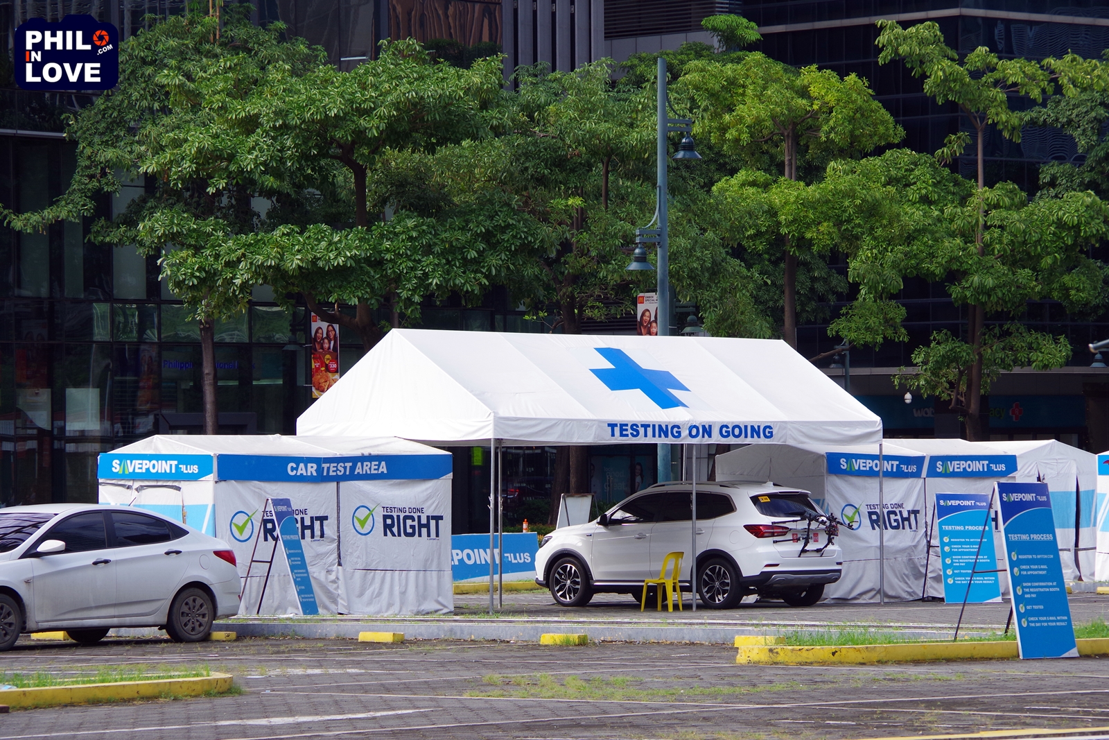 코로나19는 주차장에 차 대신 코로나19 검사실이 자리를 잡게끔 했다. 요즘 보니파시오 세다 호텔 근처에 있는 주차장을 잔뜩 차지하고 있는 것은 세이브 포인트 플러스(SAVEPOINT Plus)라는 곳에서 운영하는 코로나19 검사실이다. 이곳에서는 드라이브스루(차량 탑승) 또는 홈서비스 방식으로 코로나19 검사 서비스를 제공하고 있는데, 예약 손님만을 대상으로 하기에 한적한 분위기에서 검사를 받을 수 있다. 단, 이곳에서는 신속진단법(Rapid Test)의 검사 방식으로만 검사가 가능하다. 신속진단법(간이진단법)은 임신 진단 키트로 임신 여부를 확인하는 것과 비슷한 방식의 검사 방법으로 검사 비용이 저렴한 편이지만 유전자 진단법(RT-PCR)보다 정확성이 떨어지는 단점이 있다.