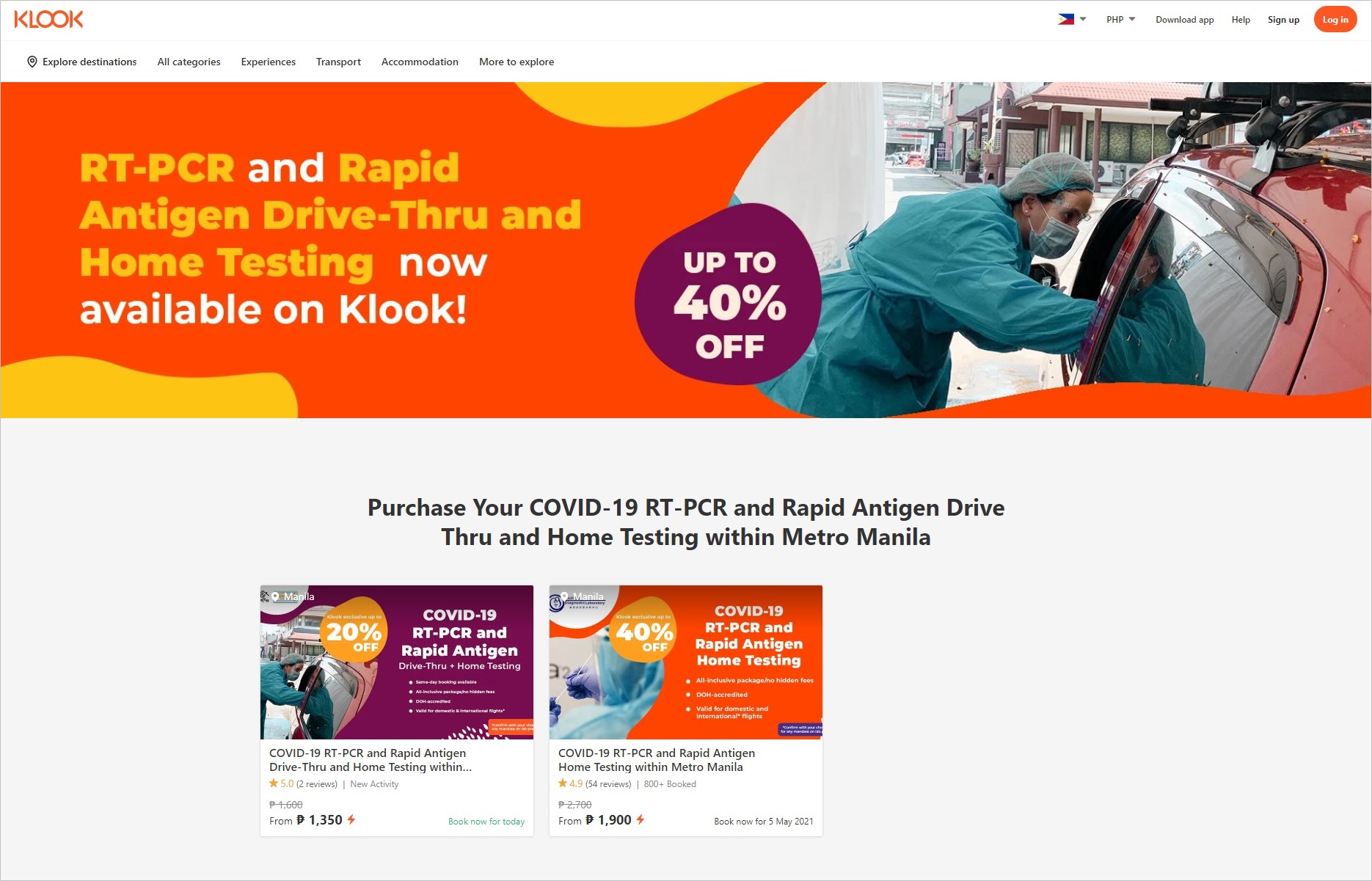 · klook-PH : COVID-19 RT-PCR and Rapid Antigen Drive-Thru and Home Testing within Metro Manila