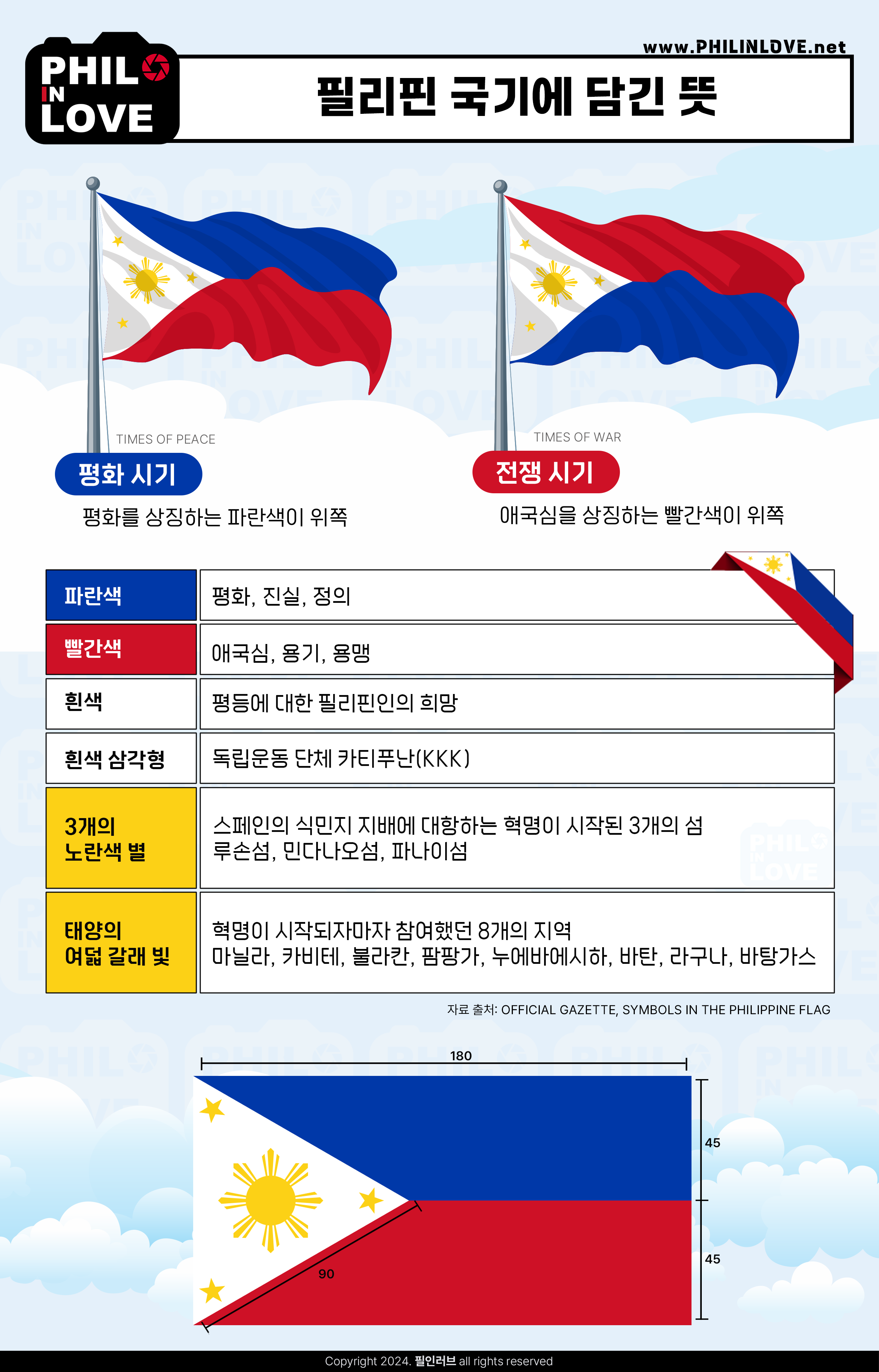 필리핀 역사: 필리핀 국기에 담긴 뜻 - 전쟁 시 국기의 붉은색이 위로 가는 이유