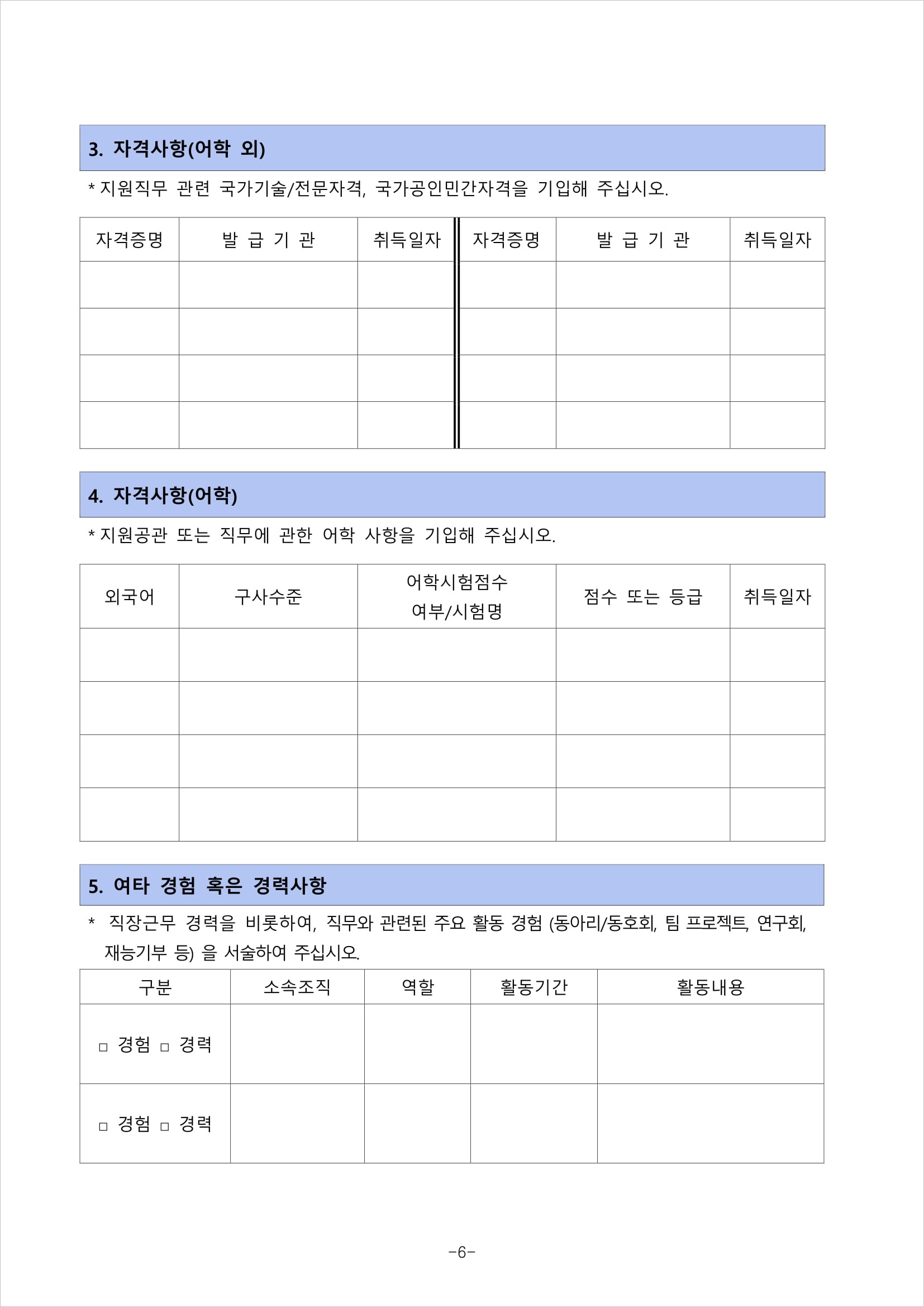 - 면접심사 통과자는 신원조회 후 최종채용 결정