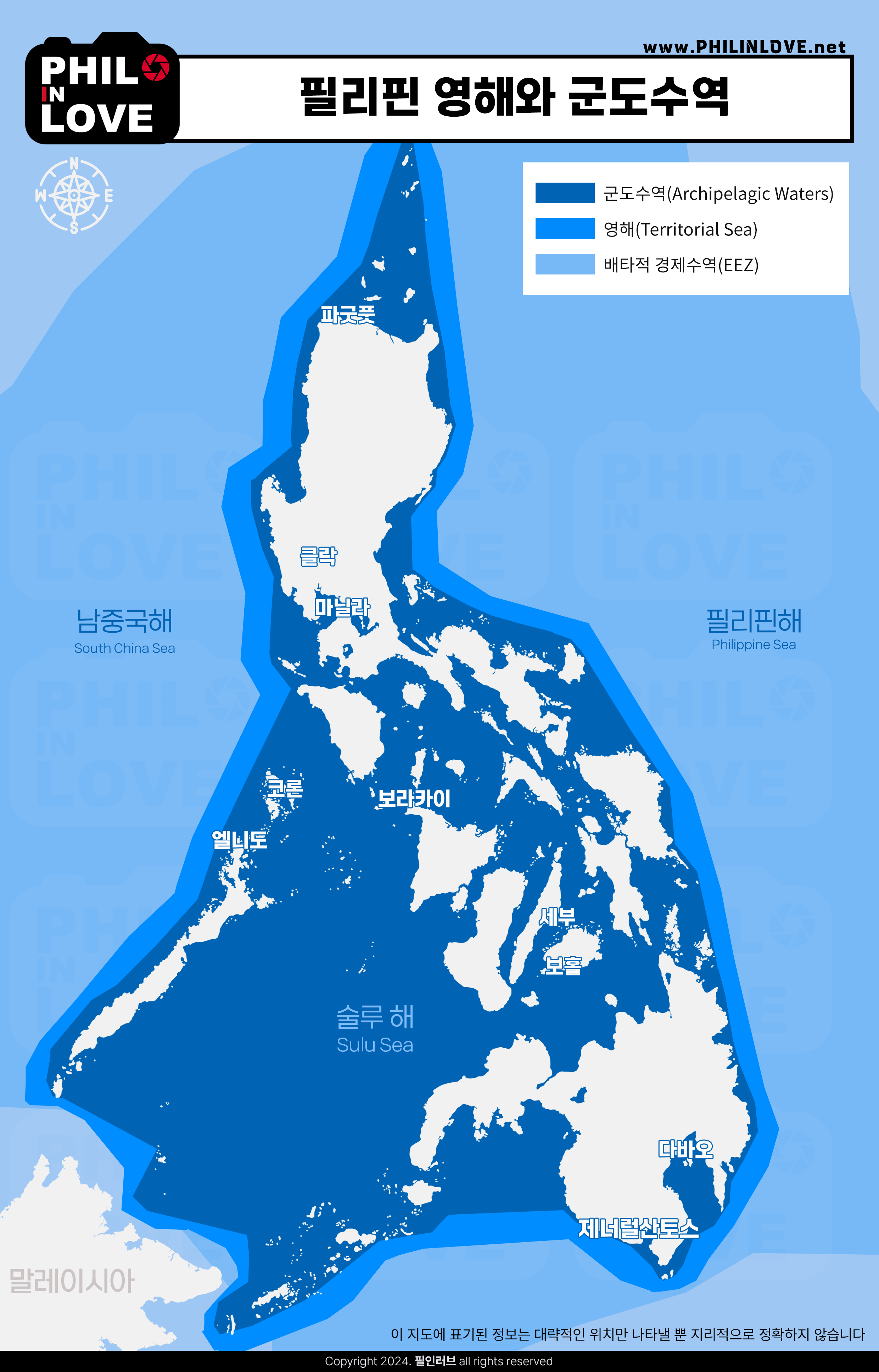 필리핀 지도: 필리핀 영해와 군도수역, 배타적 경제수역(EEZ)