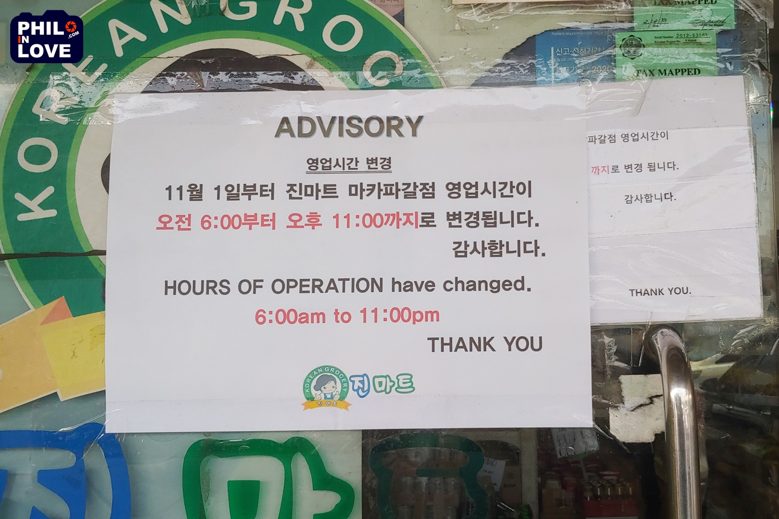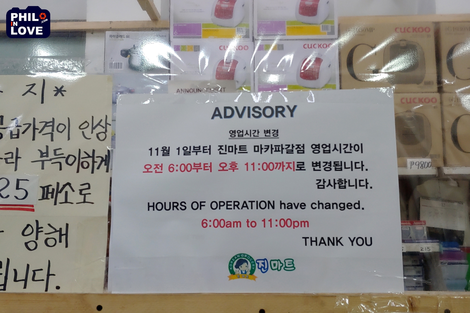 [필리핀 마닐라] 파사이 한국슈퍼 - HK선플라자의 진마트 영업시간 변경
